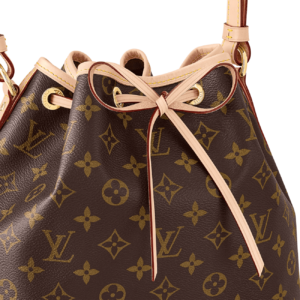 The Petit Noé bucket bag harks back to a design from 1932. A Champagne producer asked Gaston-Louis Vuitton to develop a sturdy, stylish bag in which he could transport five bottles of bubbly. This compact version in body-friendly Monogram canvas retains key features of the original – the iconic shape, generous capacity, drawstring closure – but is made for modern life. The leather strap adjusts for comfortable shoulder or cross-body wear.