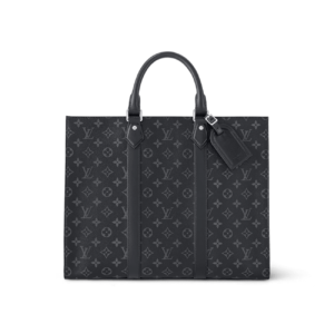 Monogram Eclipse canvas brings masculine elegance to the Sac Plat 24H. Recognizable by its lateral bands, handle mounts, and removable name tag, this tote boasts a large capacity and a mix of zipped and flat pockets, including one large enough for a laptop. It has short handles for hand carry, and long handles for shoulder carry.