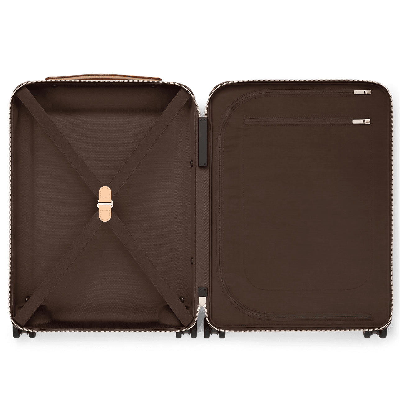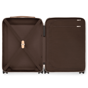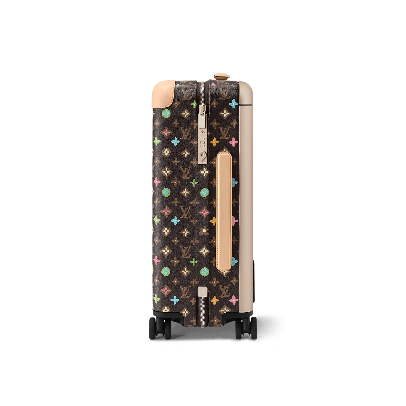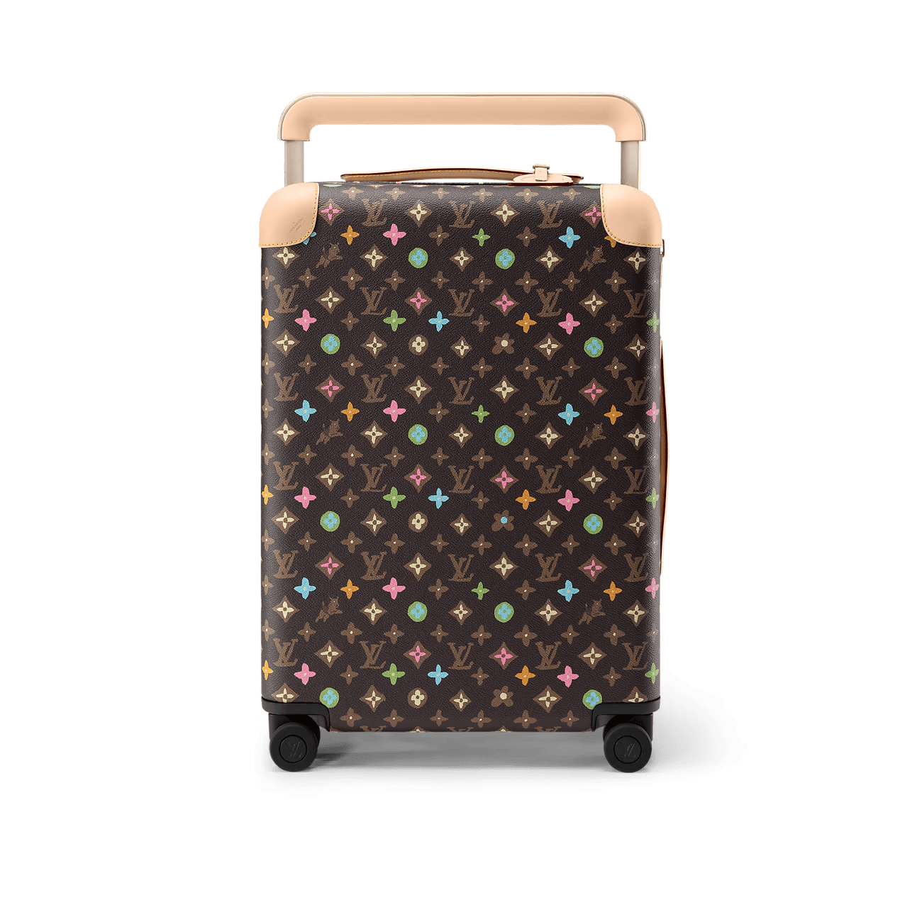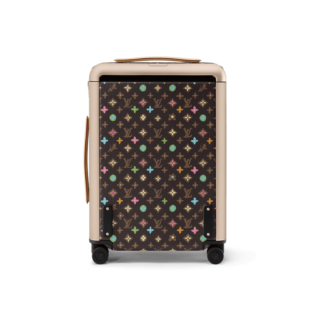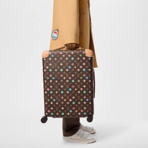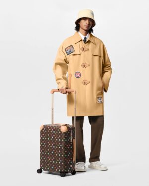 The Horizon 55 rolling case is made from Tyler, Monogram Craggy canvas, with reinforced corners and the cane handle in leather. The Monogram is drawn by hand, in a consciously uneven style, and includes daises and terriers in addition to the Monogram Flowers. The roomy case can be used as carry-on luggage.