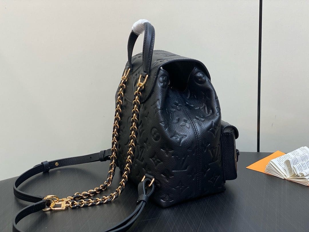 The playful Backup backpack is made from Monogram Empreinte leather, with the Monogram pattern subtly embossed into the cowhide. This versatile bag can be carried on the back or shoulder, thanks to its adjustable strap, by hand, with its sturdy top handle, or even cross-body using the braided chain.