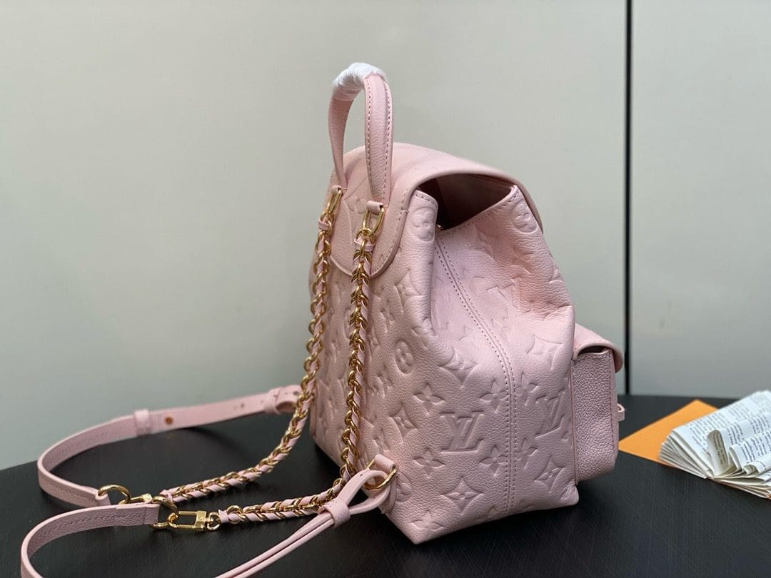 The playful Backup backpack is made from Monogram Empreinte leather, with the Monogram pattern subtly embossed into the cowhide. This versatile bag can be carried on the back or shoulder, thanks to its adjustable strap, by hand, with its sturdy top handle, or even cross-body using the braided chain.