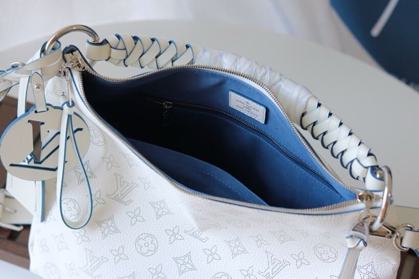 The Beaubourg Hobo MM bag is made from Mahina calf leather perforated with the Monogram pattern. It boasts a stylishly braided-leather top handle, with hand-painted edge-dyeing along the braids. The leather zip pulls and large LV charm sign the bag. A detachable, wide leather strap means that this supple bag feels comfortable against the body.