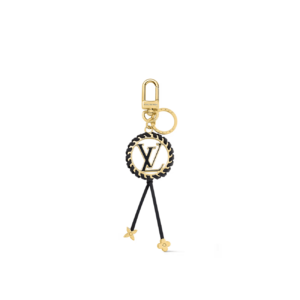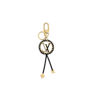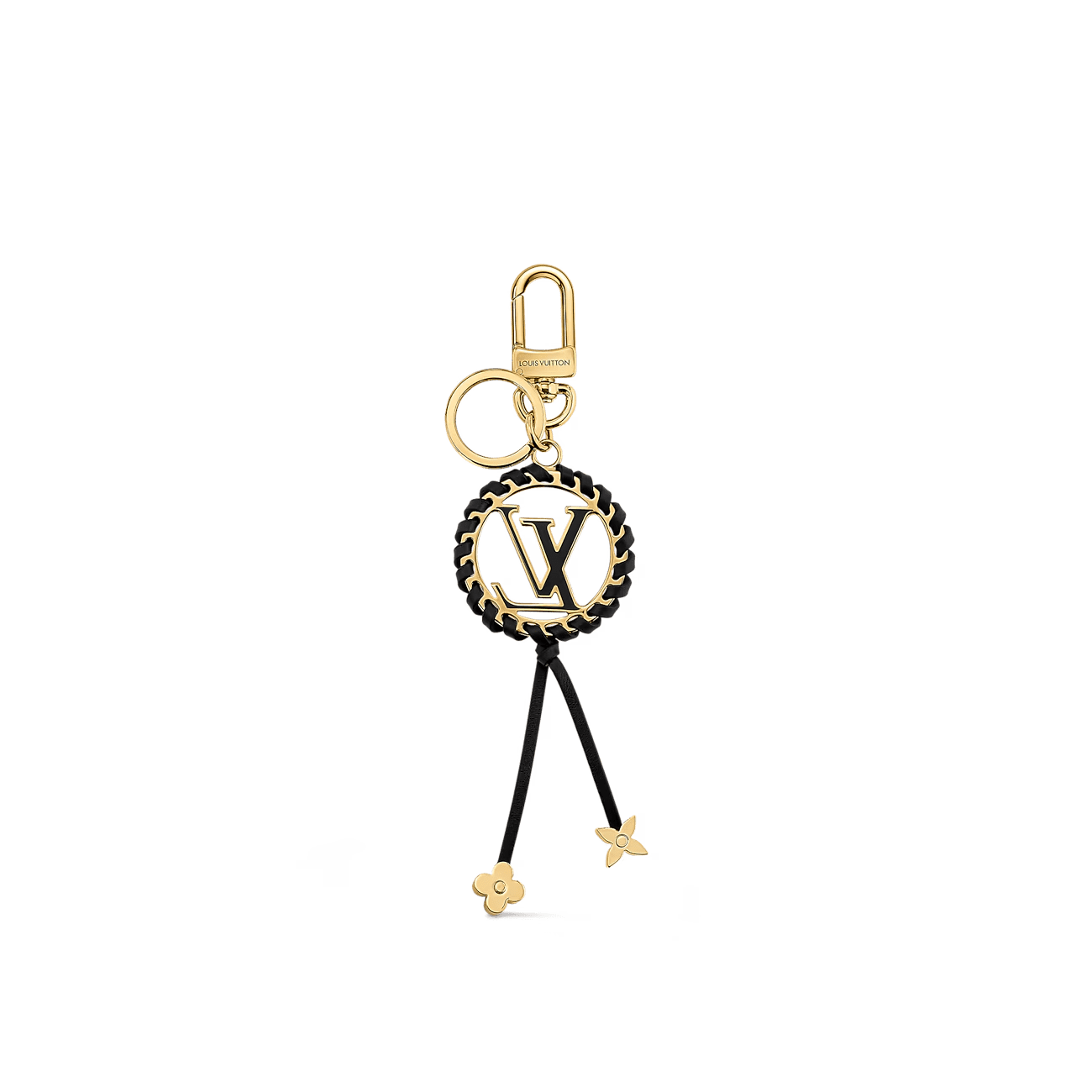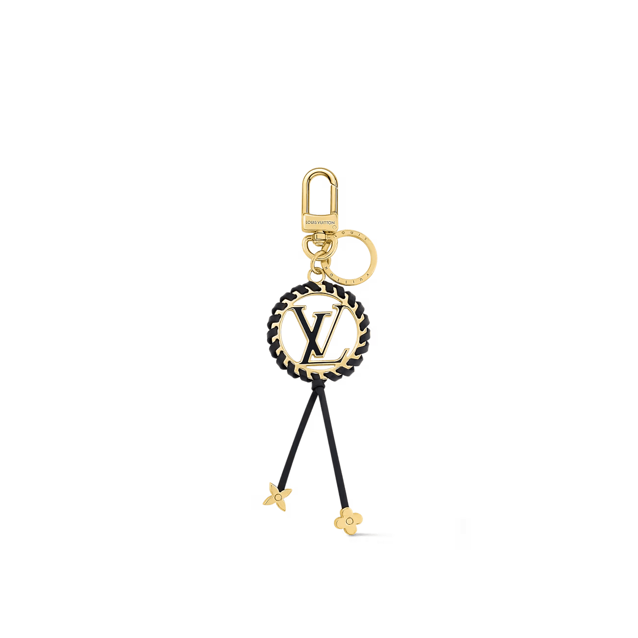 The Very bag charm and key holder spotlights the LV Circle signature, which is inlaid with colored enamel and embellished with a matching leather braid ending in two Monogram Flower charms. This intricate design references Louis Vuitton’s heritage of craftsmanship and coordinates with the Very leather goods line.