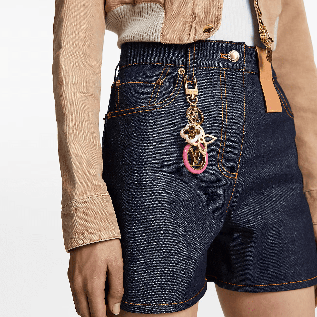 This feminine bag charm reinterprets the Maison’s Monogram Flowers and the LV Initials signature in a light and colorful spirit. It is the perfect companion to any bag, and can be used both as a bag charm or a key holder.