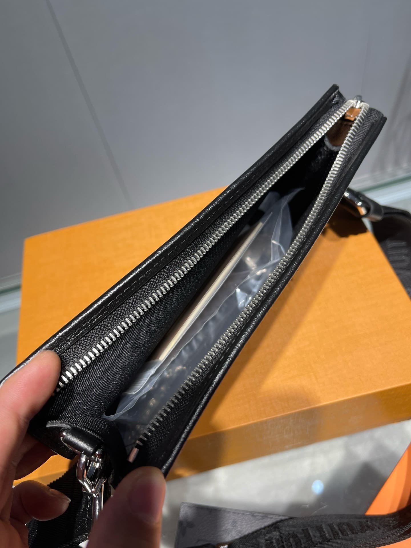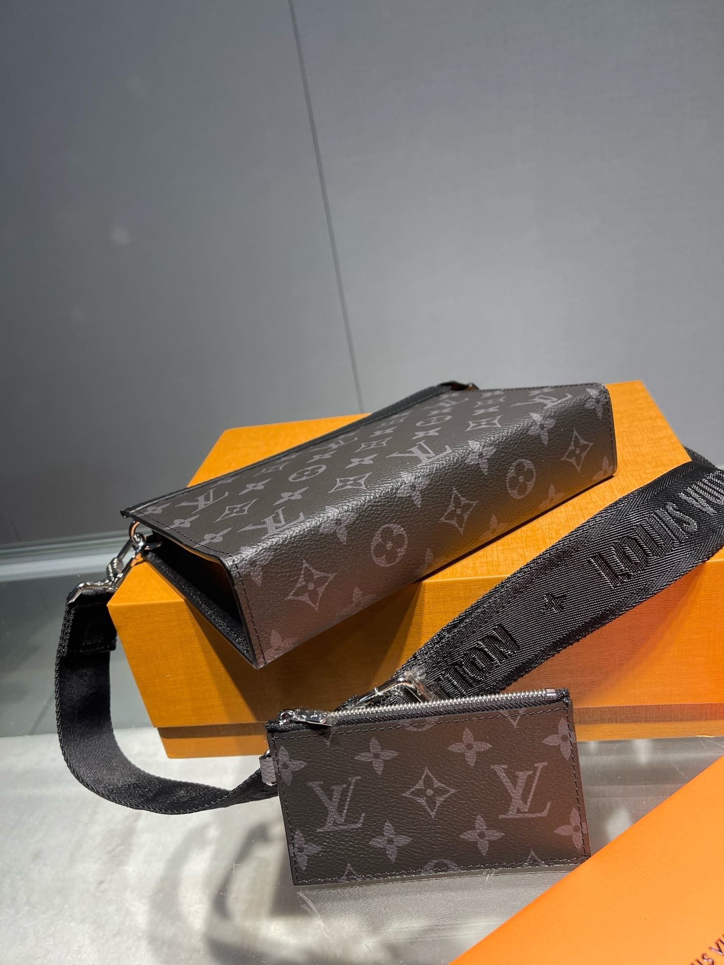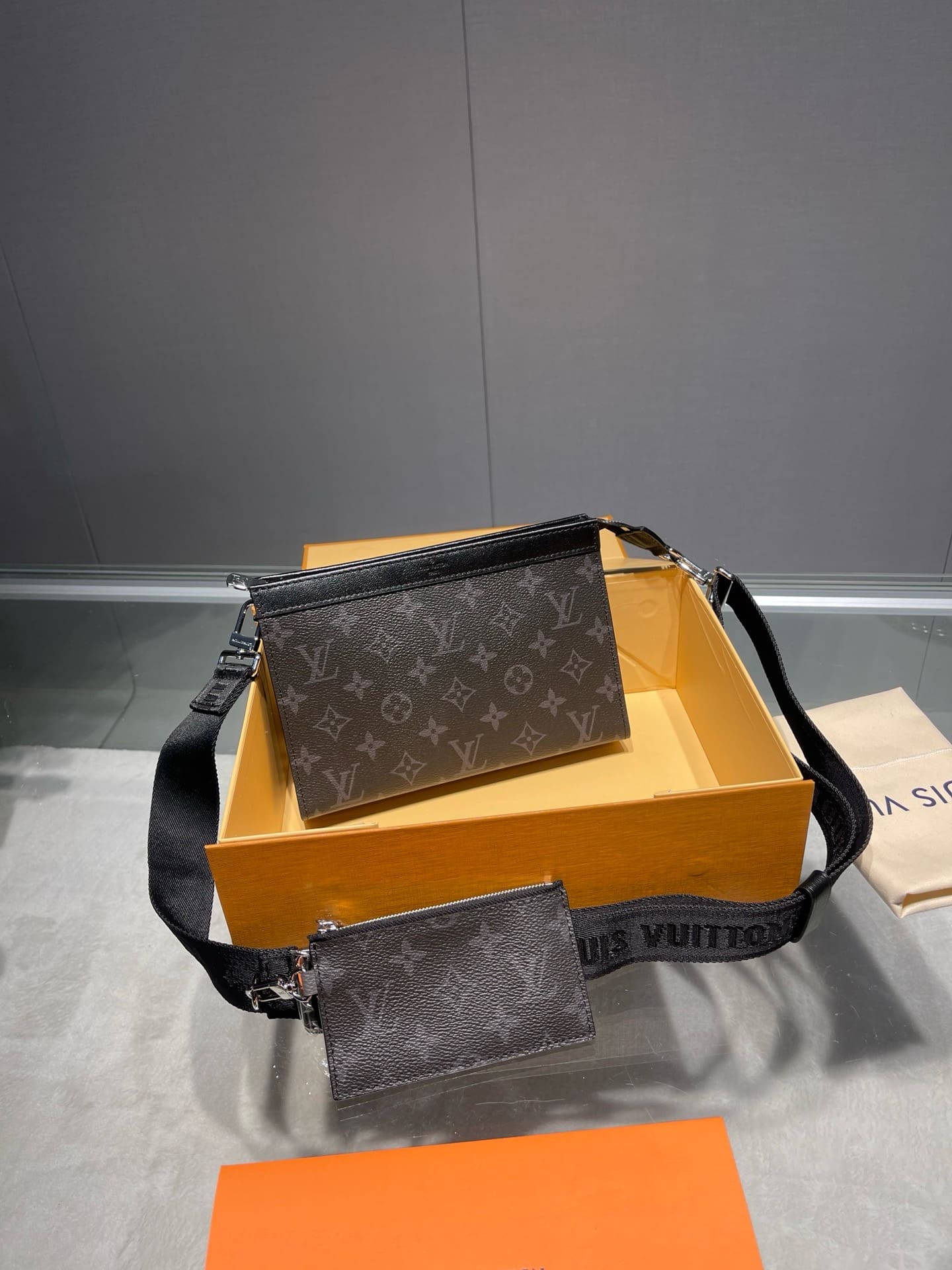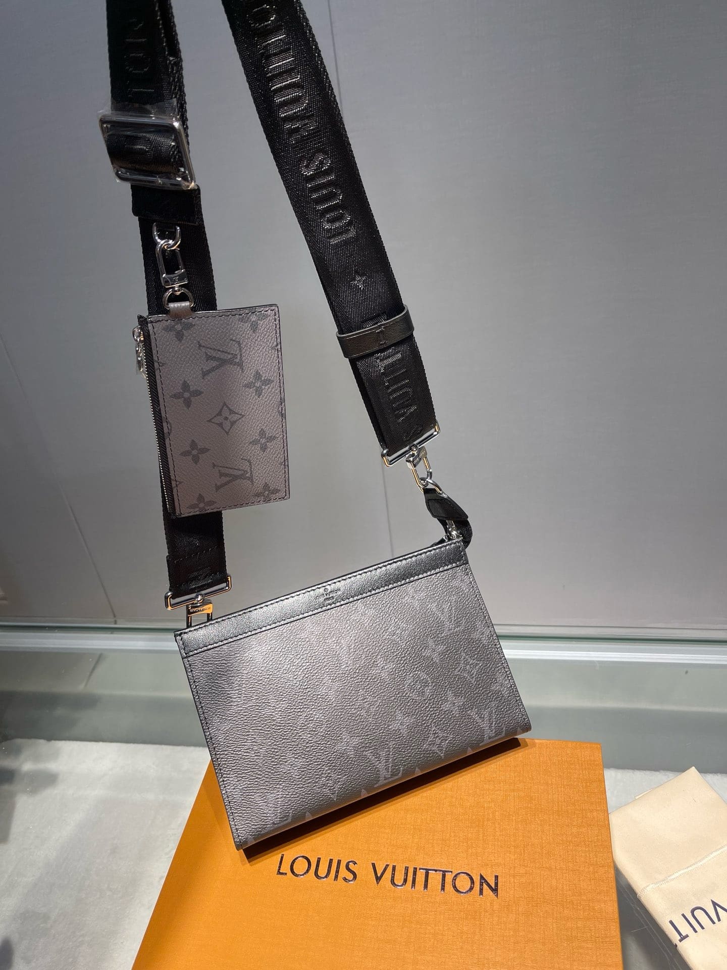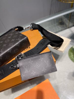 The Gaston Wearable Wallet is inspired by the House’s Pochette Voyage. Fashioned from Monogram Eclipse Reverse canvas, it has a removable and adjustable textile strap with a detachable card holder attached to it, ideal for contactless payment or commute card. The Gaston is the perfect size for everyday essentials such as a smart phone.