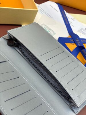 The Brazza wallet takes on a sophisticated new signature look in Monogram Shadow leather. Louis Vuitton’s emblematic Monogram pattern is embossed on fine, supple calfskin in a cool shade of gray. With multiple compartments for cash and papers plus a coin pouch and no fewer than 17 card slots, it’s a handsome and practical all-in-one wallet.