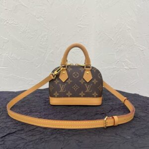 A miniature replica of the iconic Alma bag, the Nano Alma pairs Louis Vuitton’s signature Monogram canvas with natural leather trim. This exquisitely crafted piece combines heritage appeal with modern functionality: the double-zip closure reveals a surprisingly spacious interior, while the two leather handles and adjustable, removable shoulder strap offer multiple carry options.
