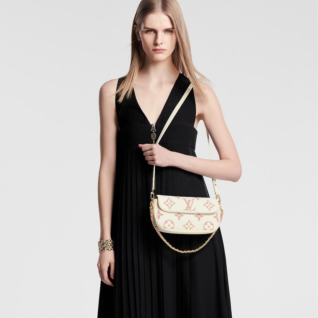 This Wallet On Chain Ivy bag is made of Monogram Empreinte leather in pastel tones, with a magnetic flap that opens to a soft and comfortable fit. The adjustable leather shoulder strap and leather braided chain are both detachable, providing a variety of carrying options for day and night occasions.