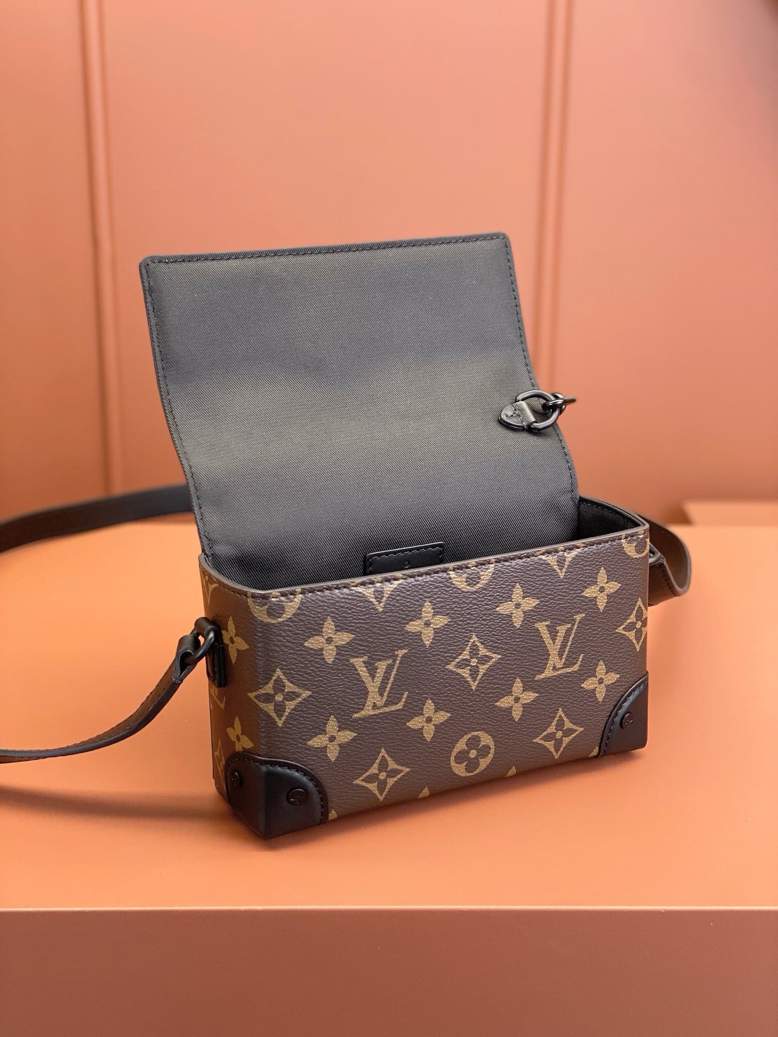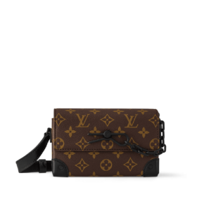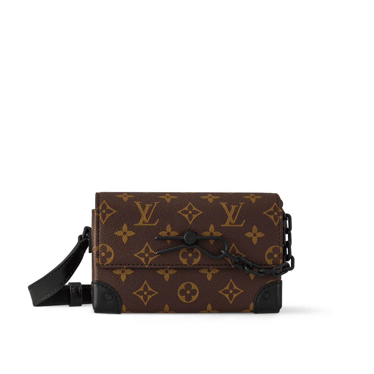 Instantly recognizable by its decorative chain-and-pin signature, the Steamer Wearable Wallet in Monogram Macassar canvas is ideal for smaller essentials. The magnetic closure gives easy access to what’s inside while the shoulder strap adjusts for shoulder and cross-body wear. The reinforced corners evoke the House’s trunk-making origins.