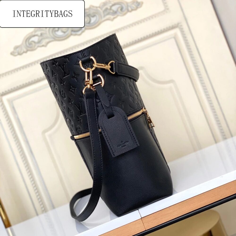 Size: 35 x 42 x 13 cm•Monogram Empreinte canvas•Golden colour metallic pieces•Removable short shoulder handle in natural cowhide leather•Removable longer shoulder strap in natural cowhide leather•Customizable name tag•2 outside zipped pockets with engraved metal pulls•1 inside flat pocket•Double smartphone pocket•4 bottom studs