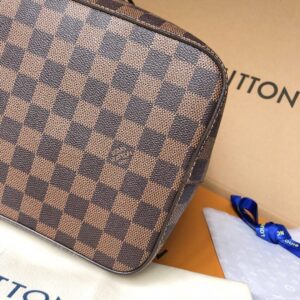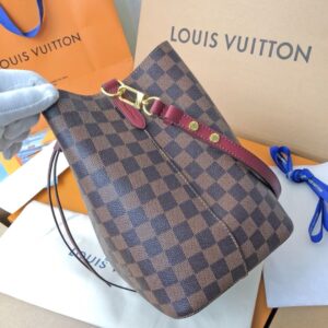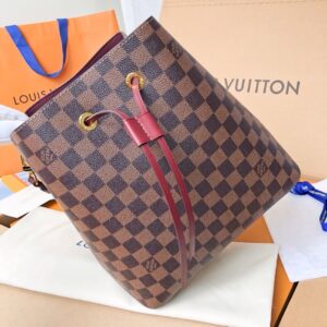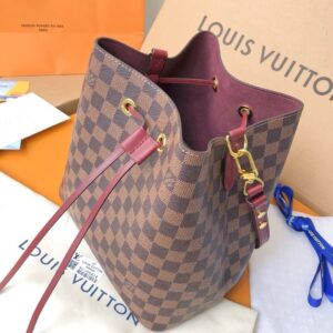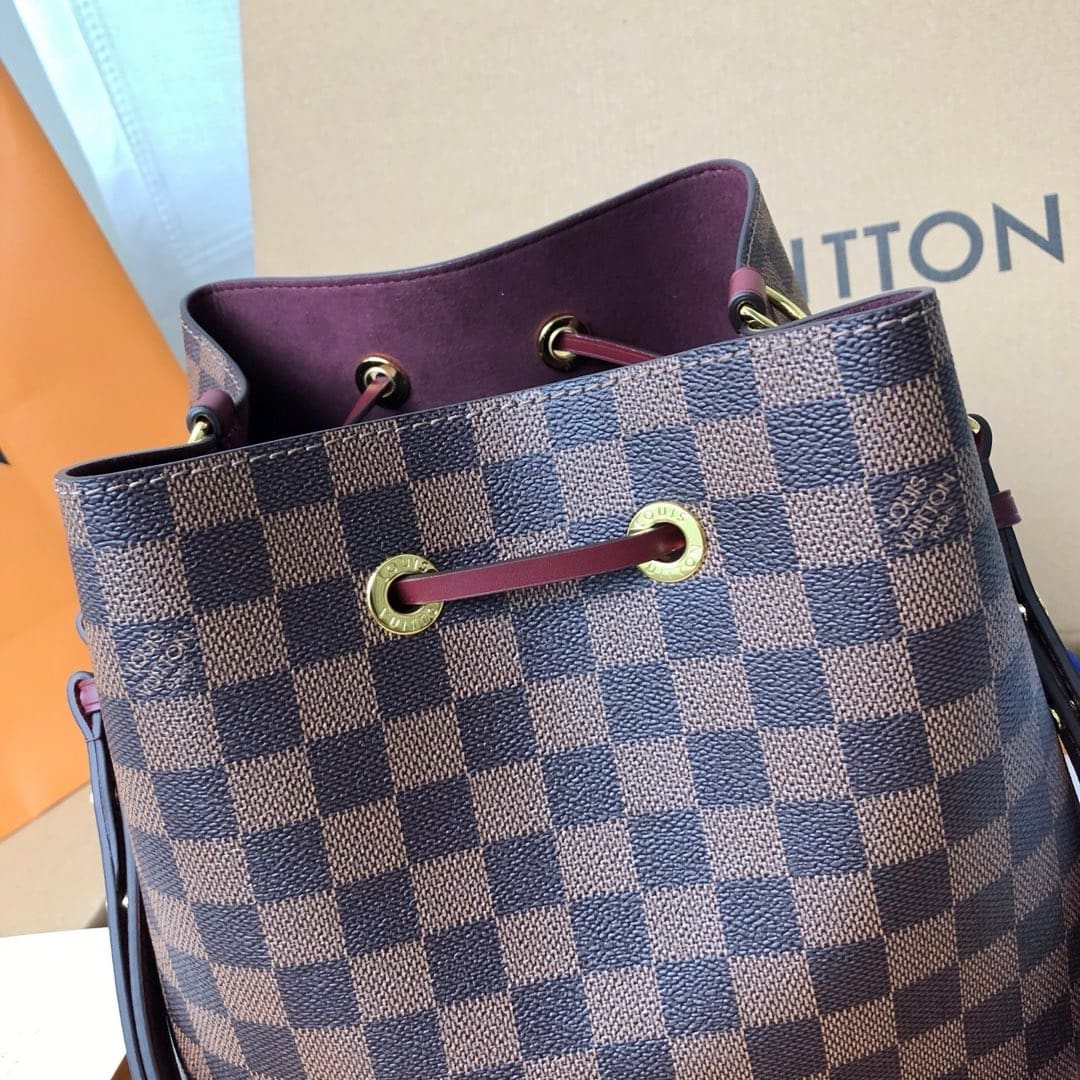 The NéoNoé bucket bag is fashioned from Damier Ebène canvas, accented with colorful details such as its drawstring and matching bonded lining. This lightweight and body-friendly bag can be worn cross-body or over the shoulder with a long or short drop, thanks to its adjustable strap. The inside zipped pocket keeps valuables safe.