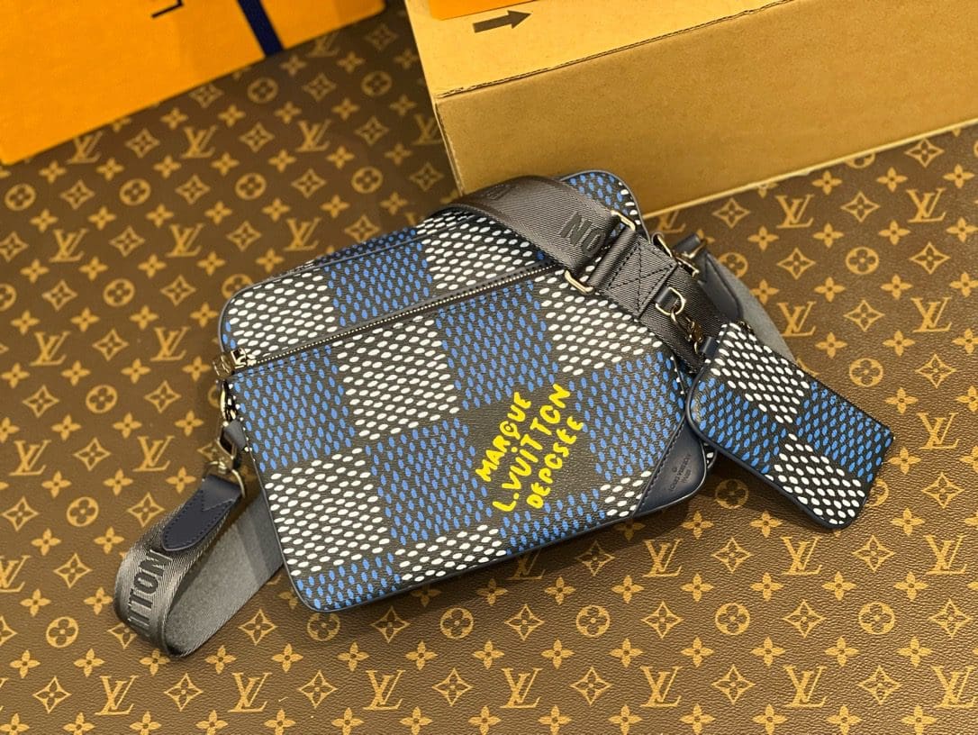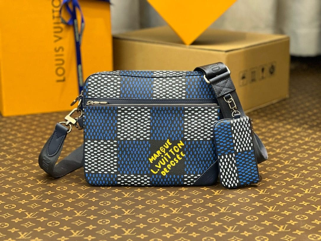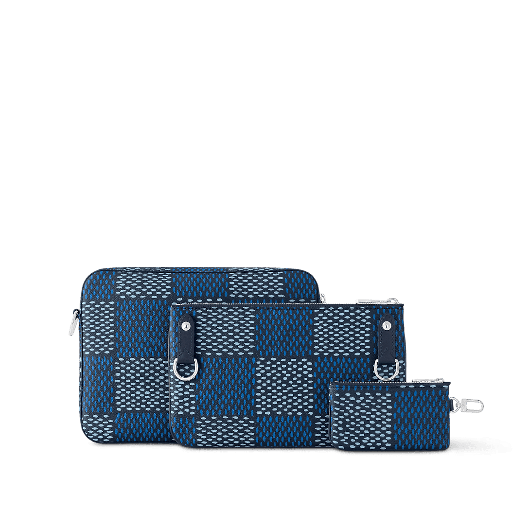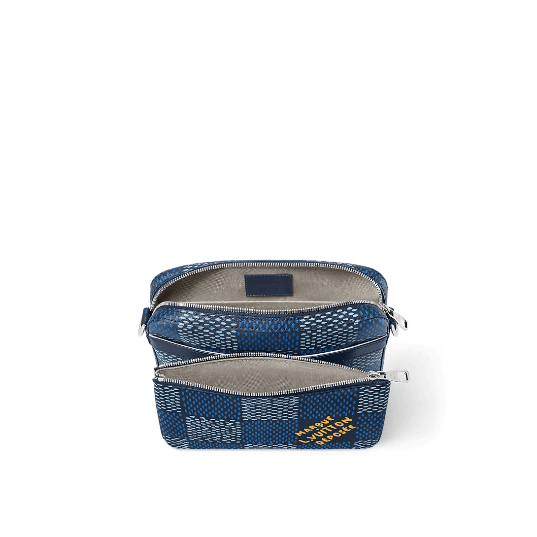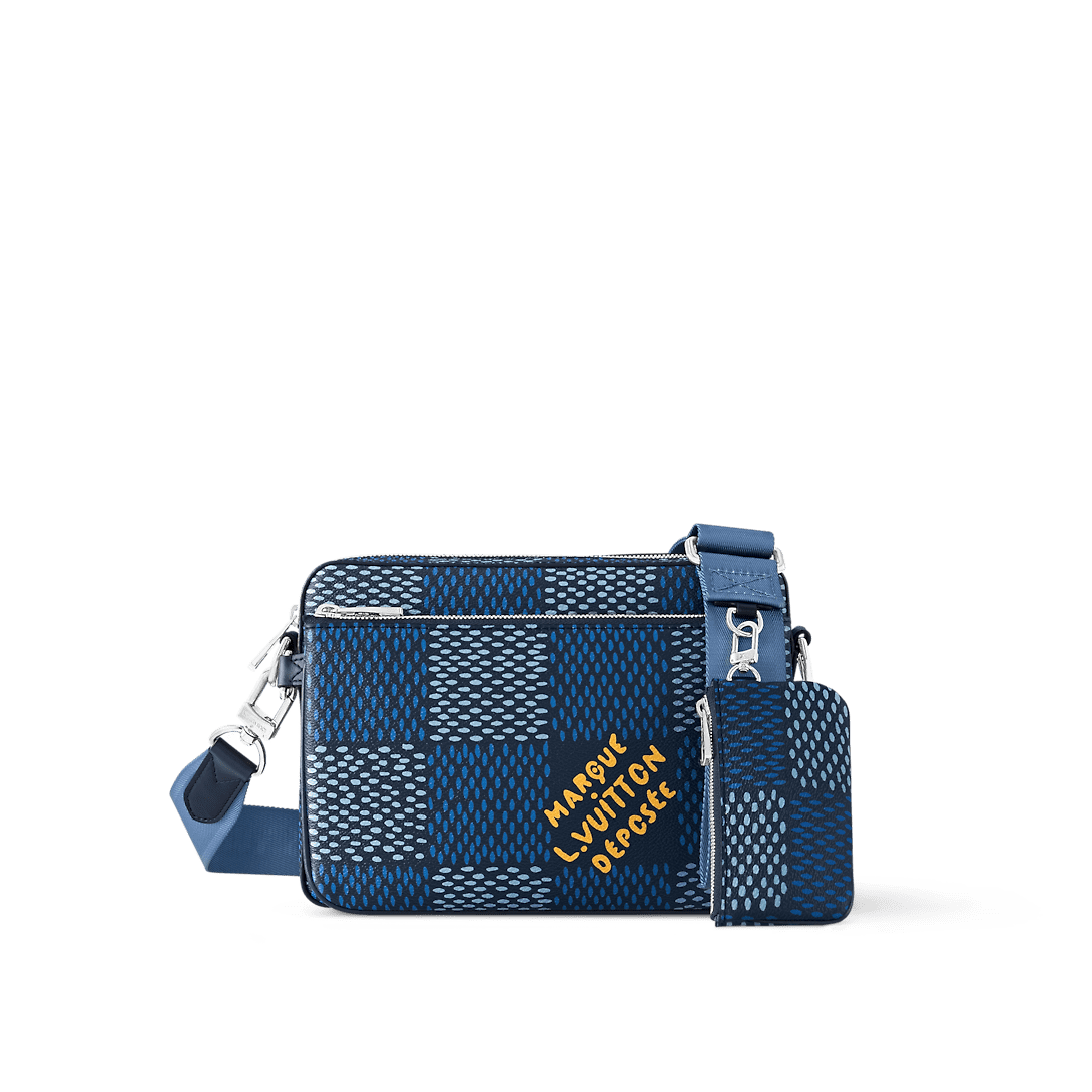 The Trio Messenger bag is made from Damier Heritage canvas, Pharrell Williams’ latest exploration of the House’s emblematic checkerboard pattern. A hybrid bag, the Trio combines a main compartment with a removable front zipped pocket. The adjustable and removable textile strap is signed “Louis Vuitton” and features a small detachable coin purse.