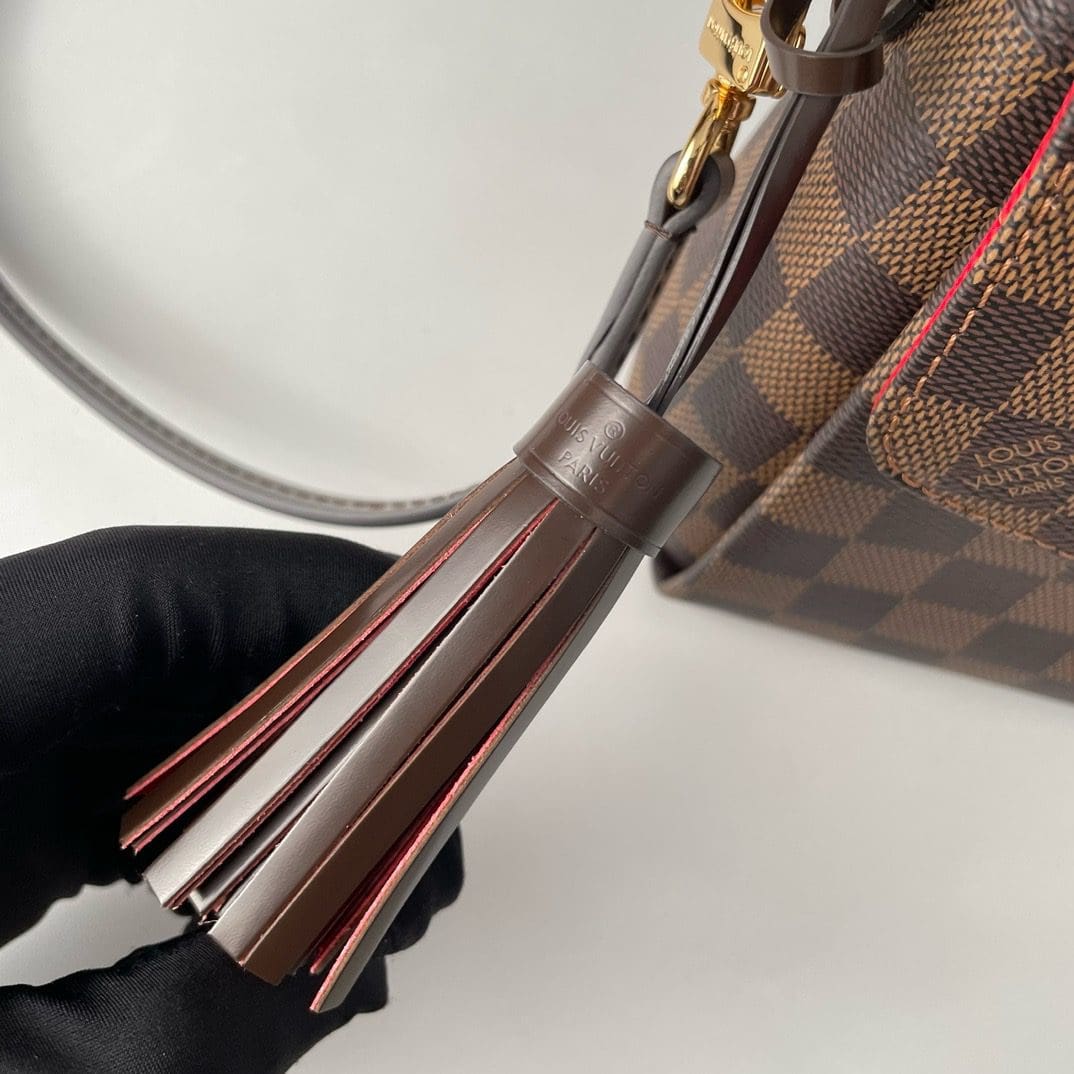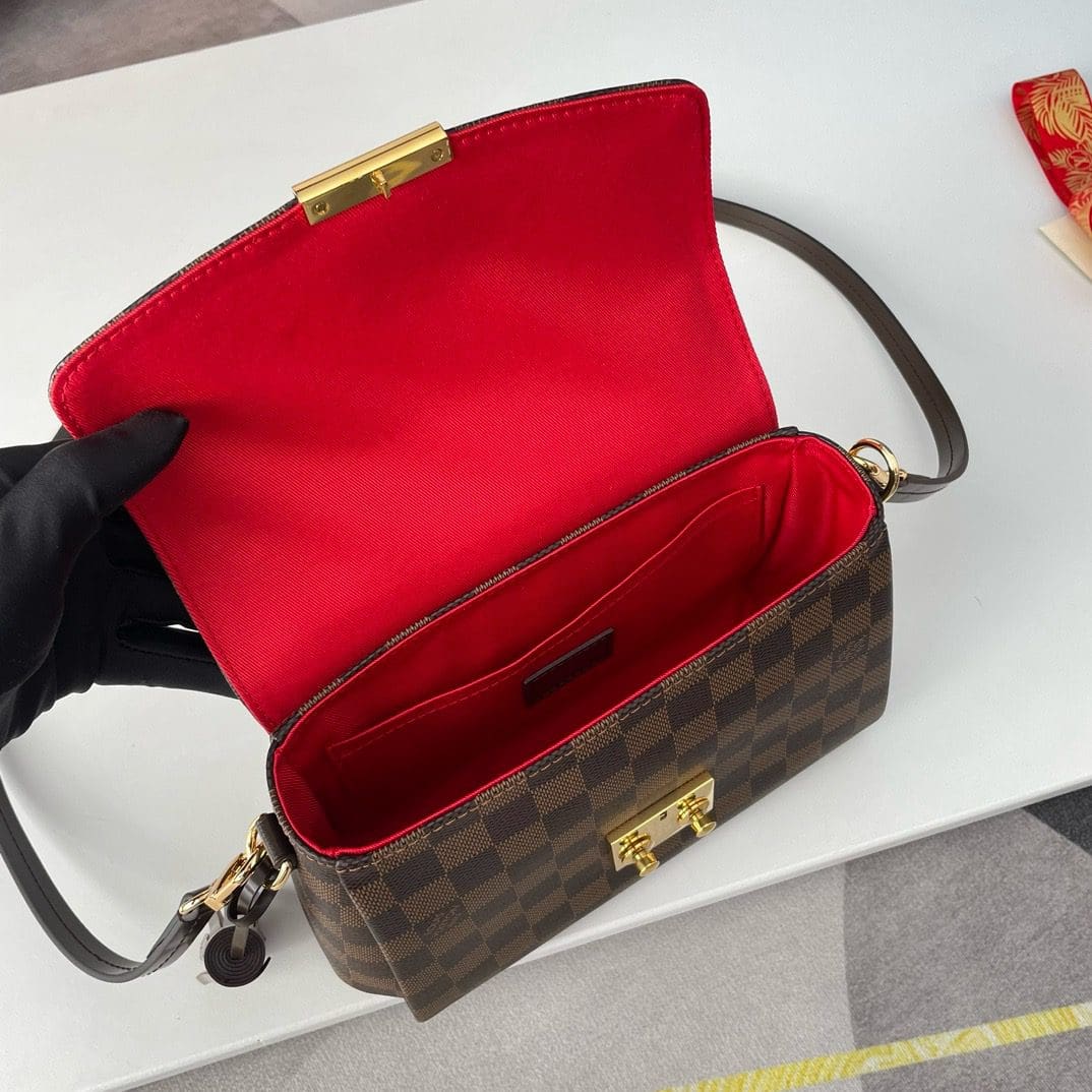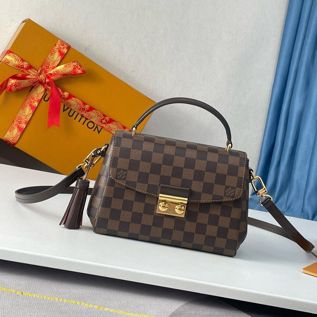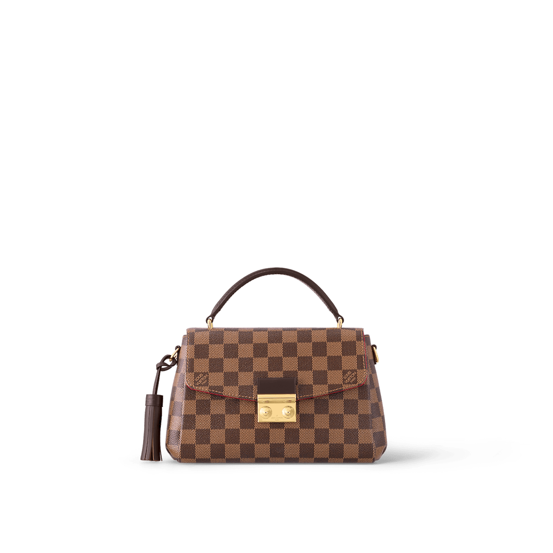 A compact bag with modern lines, the Croisette in Damier Ebene canvas boasts sophisticated details (note the signature S-lock) and a casual-chic allure. The removable leather tassel adds a touch of fun. Sized to fit the essentials plus a long wallet, this versatile piece can be hand-carried, slung over the shoulder or worn cross-body.