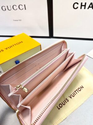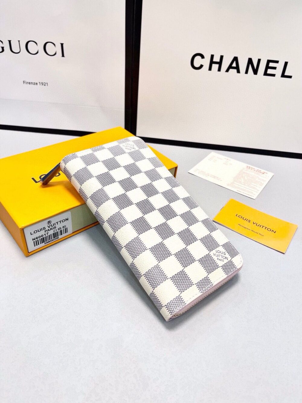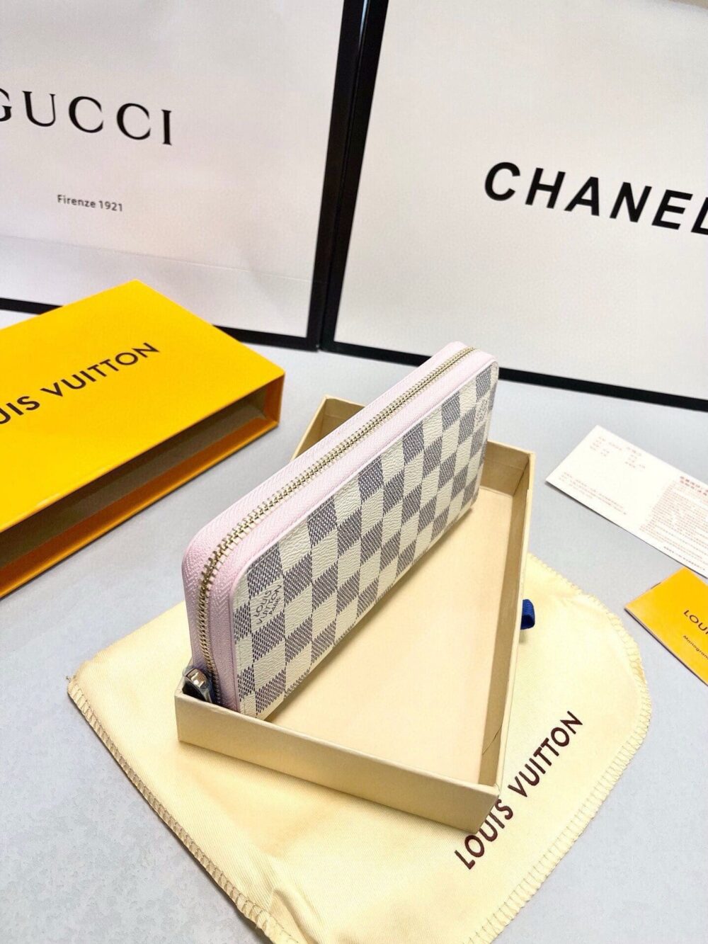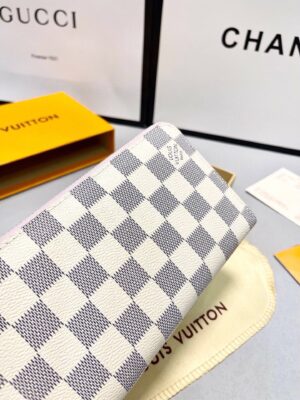 Damier Azur canvas gives a fresh look to Louis Vuitton’s iconic Zippy wallet, which is famous for its secure, zip-around format. The wallet unzips to reveal a well-organized interior in grained cowhide leather with a variety of pockets, compartments and card slots. This smart design can also be carried as a clutch.