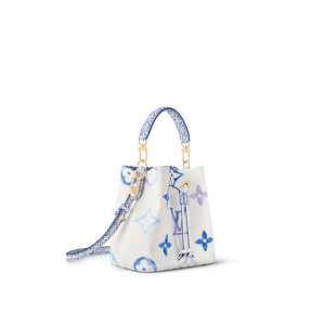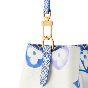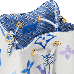 Cream-color canvas with a Giant Monogram print in pastel brings a resort vibe to this NeoNoé bucket bag. The LV’s and Monogram Flowers seem to be painted on the canvas in watercolor and explore soft nuances of tone. The NeoNoé closes with a drawstring. Inside there’s a central pocket with a press stud.