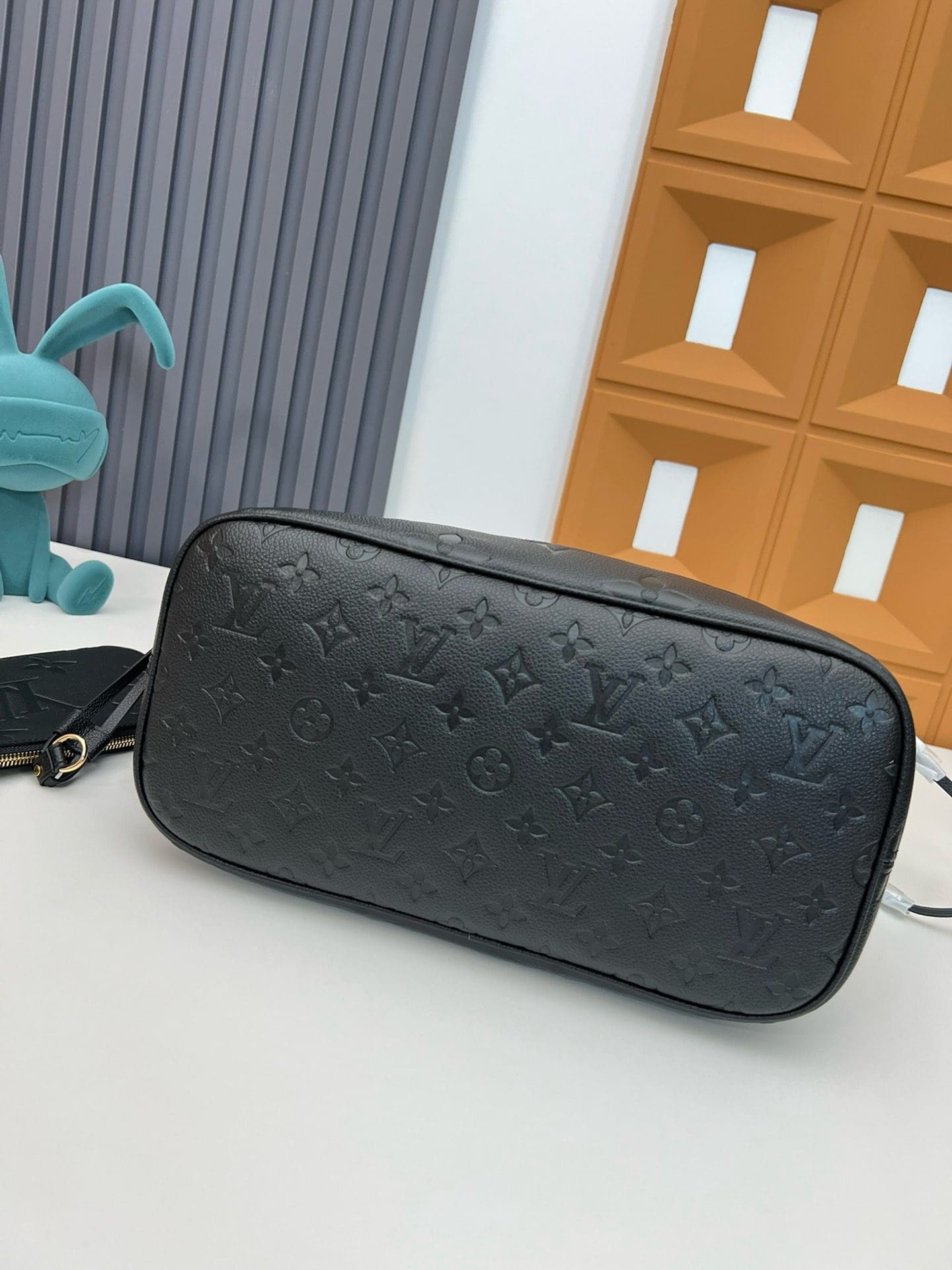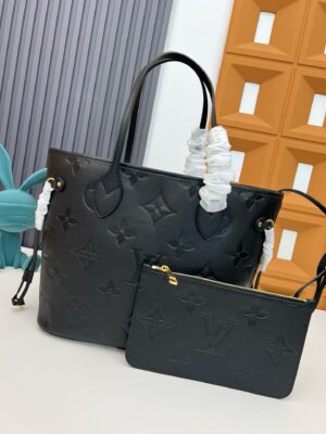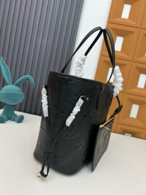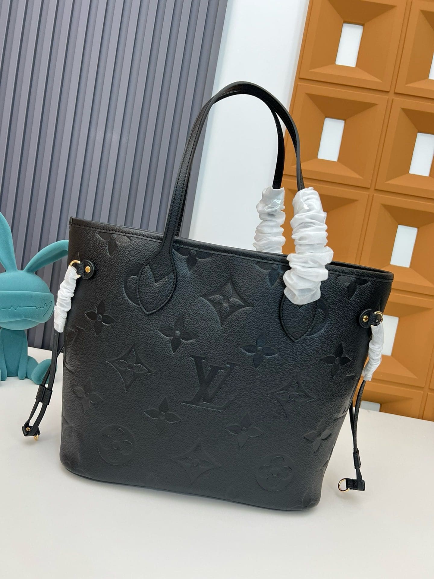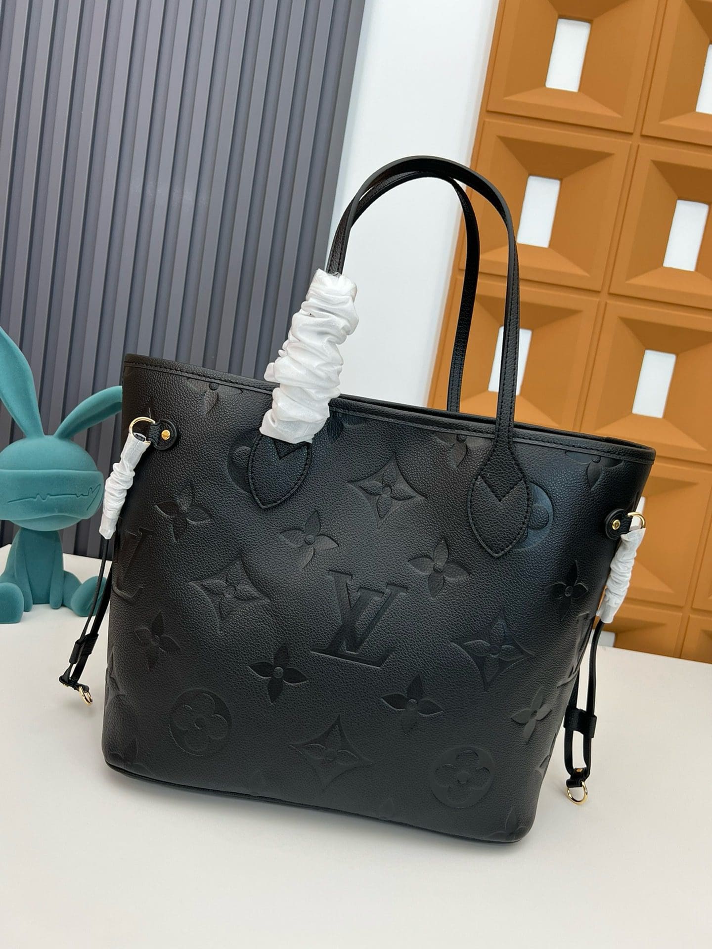 The essential Neverfull MM tote now comes in embossed Monogram Empreinte leather. Its generous dimensions make this bag ideal for everyday use while the long shoulder handles and supple leather mean it’s comfortable to carry. With the side laces cinched, this roomy carryall becomes a stylish city bag. It can be worn over the shoulder or on the elbow.