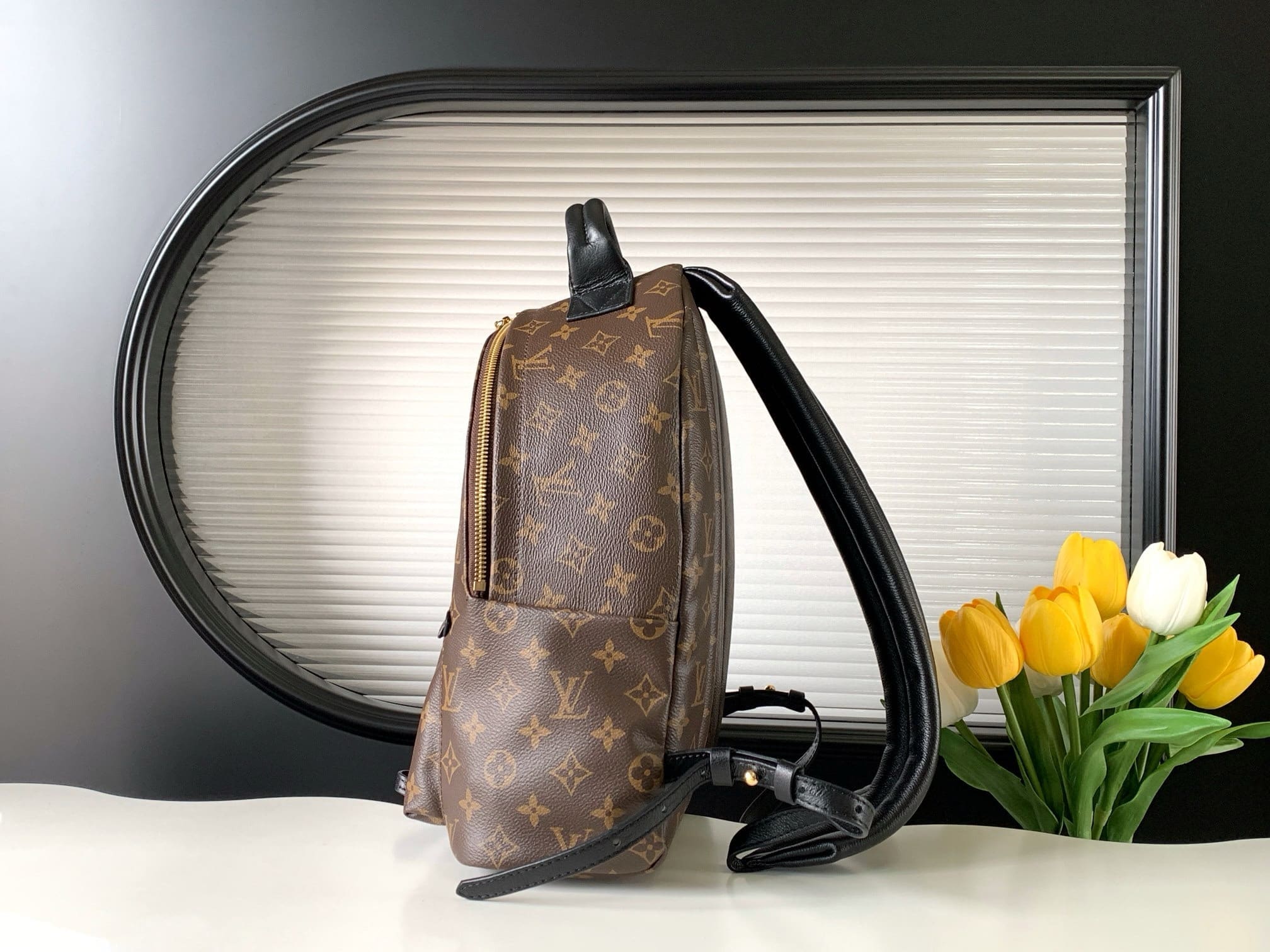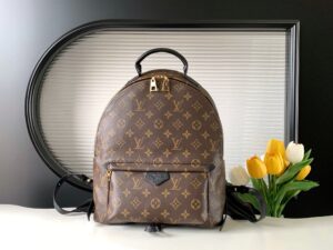 • The Palm Springs MM backpack gives a fresh twist to a utilitarian staple, transforming it into an on-trend city bag. A chic and practical accessory for sporty urban nomads, this generously sized model is fashioned from iconic Monogram canvas with soft leather trim and gold-tone hardware. The quilted straps are foam-backed for a comfortable carry.