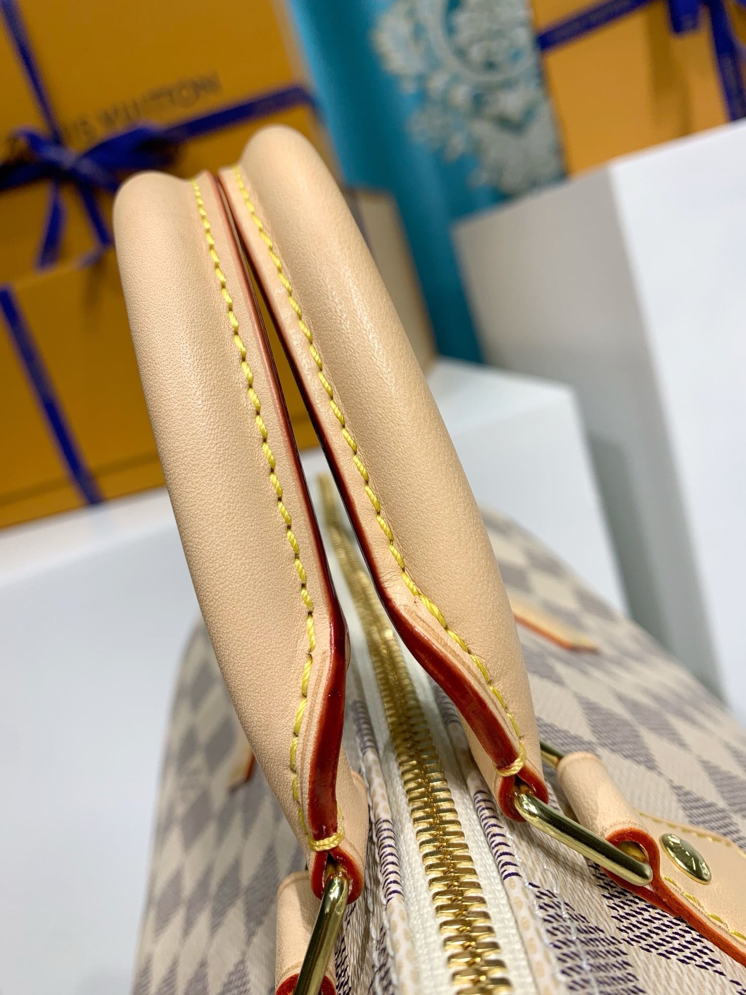 30 x 21 x 17 cm (Length x heightx width ) •Golden color metallic pieces•Adjustable shoulder strap for hand cross•body or shoulder carry•Rounded handles and trimmings in natural cowhide leather•Lockable double•zipped closure•Interior pocket•D•ring for keys and accessories•Soft textile lining