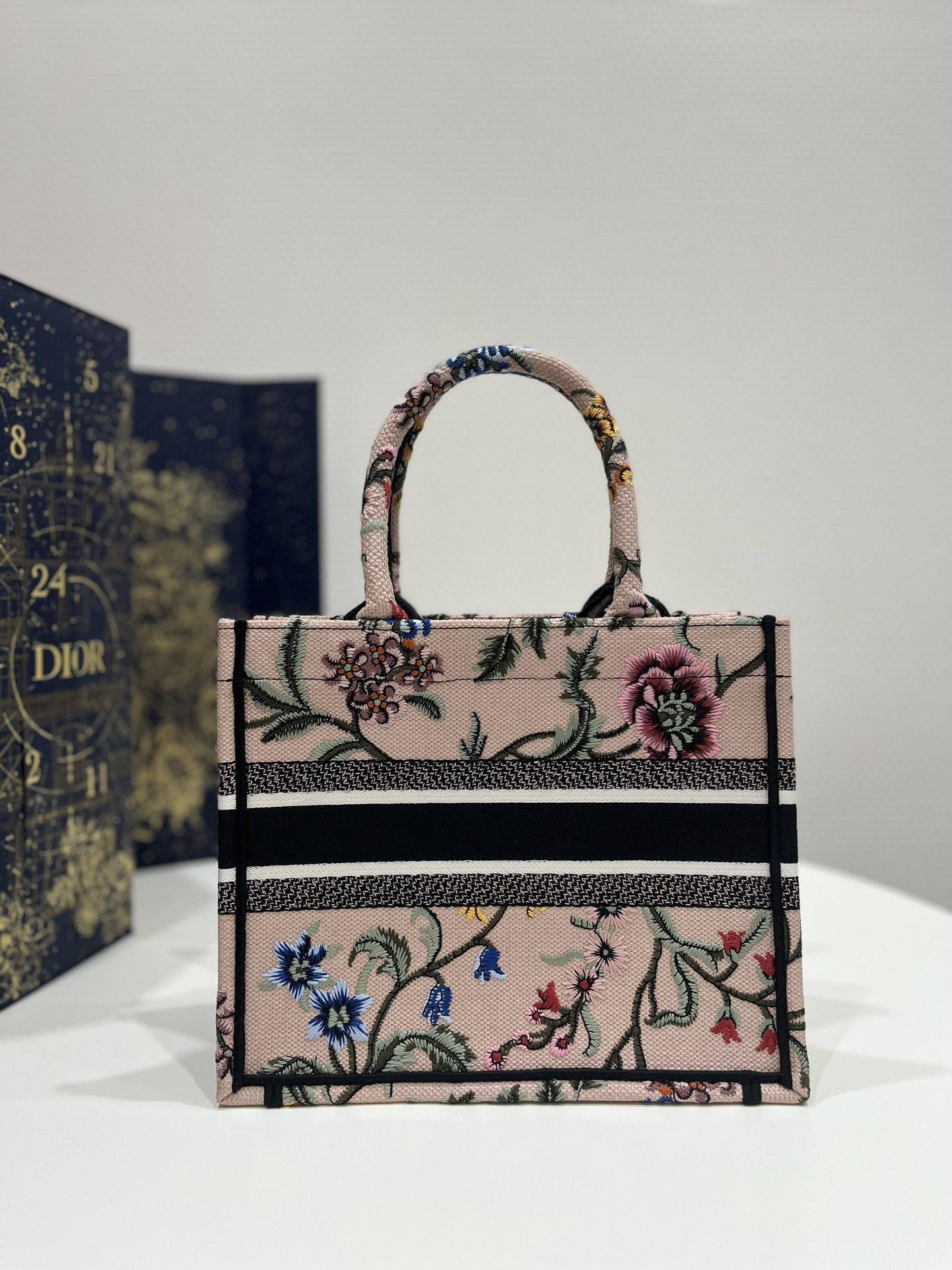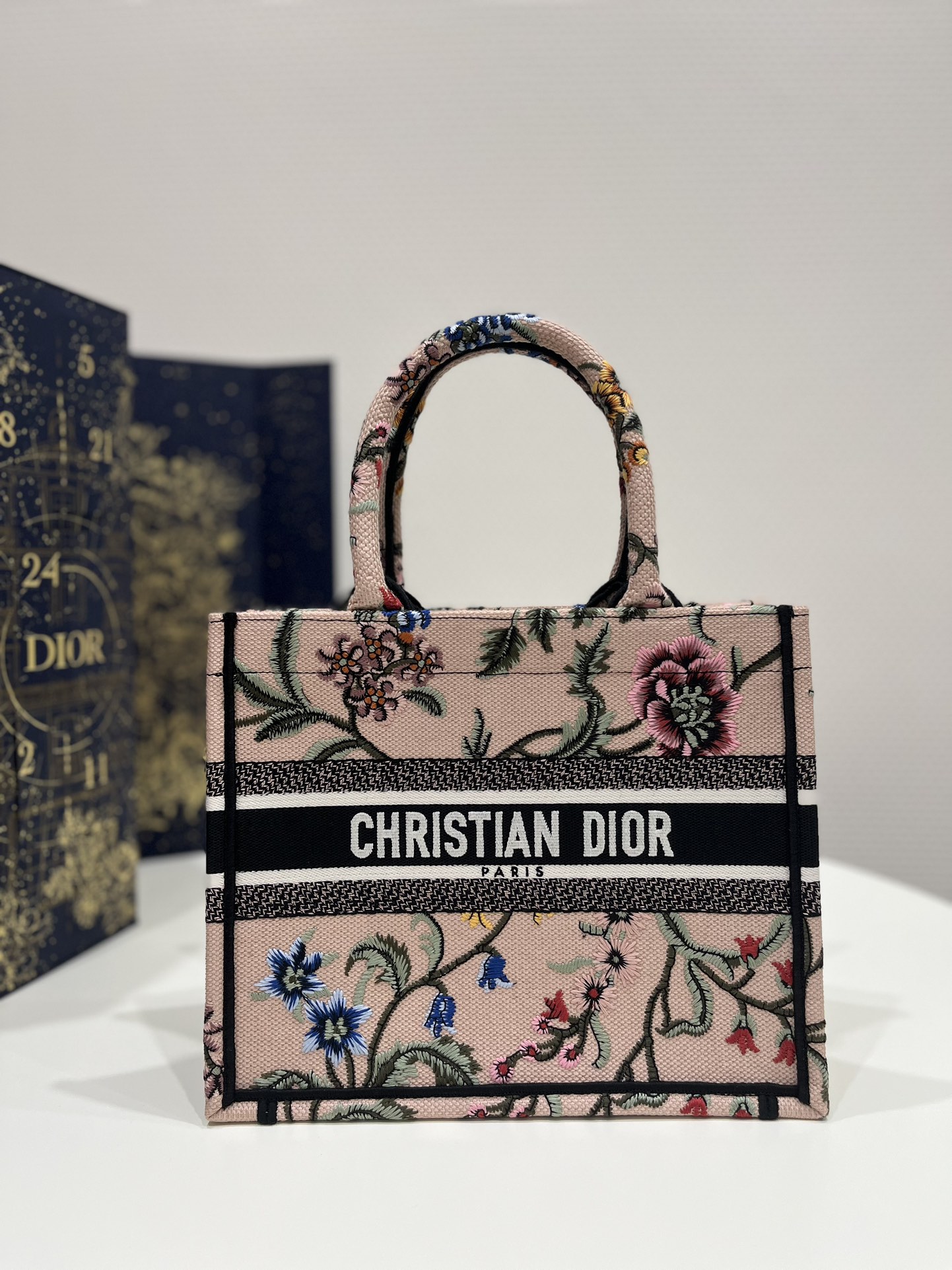 Introduced by Maria Grazia Chiuri, Creative Director of Christian Dior, the Large Dior Book Tote Bag has become a staple of the Dior aesthetic. Designed to hold all daily essentials, the style is fully embroidered with a multicolor Dior Petites Fleurs motif, a romantic and vibrant homage to Mr. Dior’s passion for florals. Adorned with the Christian Dior Paris signature on the front, the medium tote exemplifies the House’s signature savoir-faire and may be carried by hand.