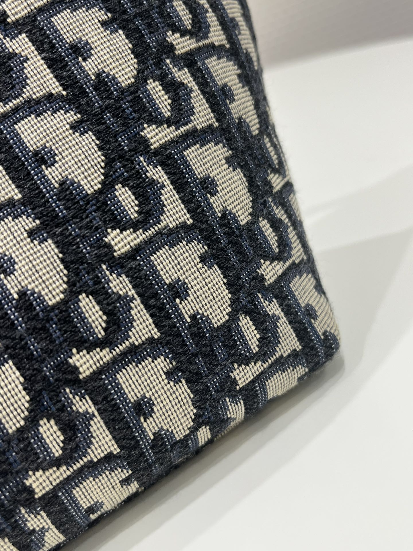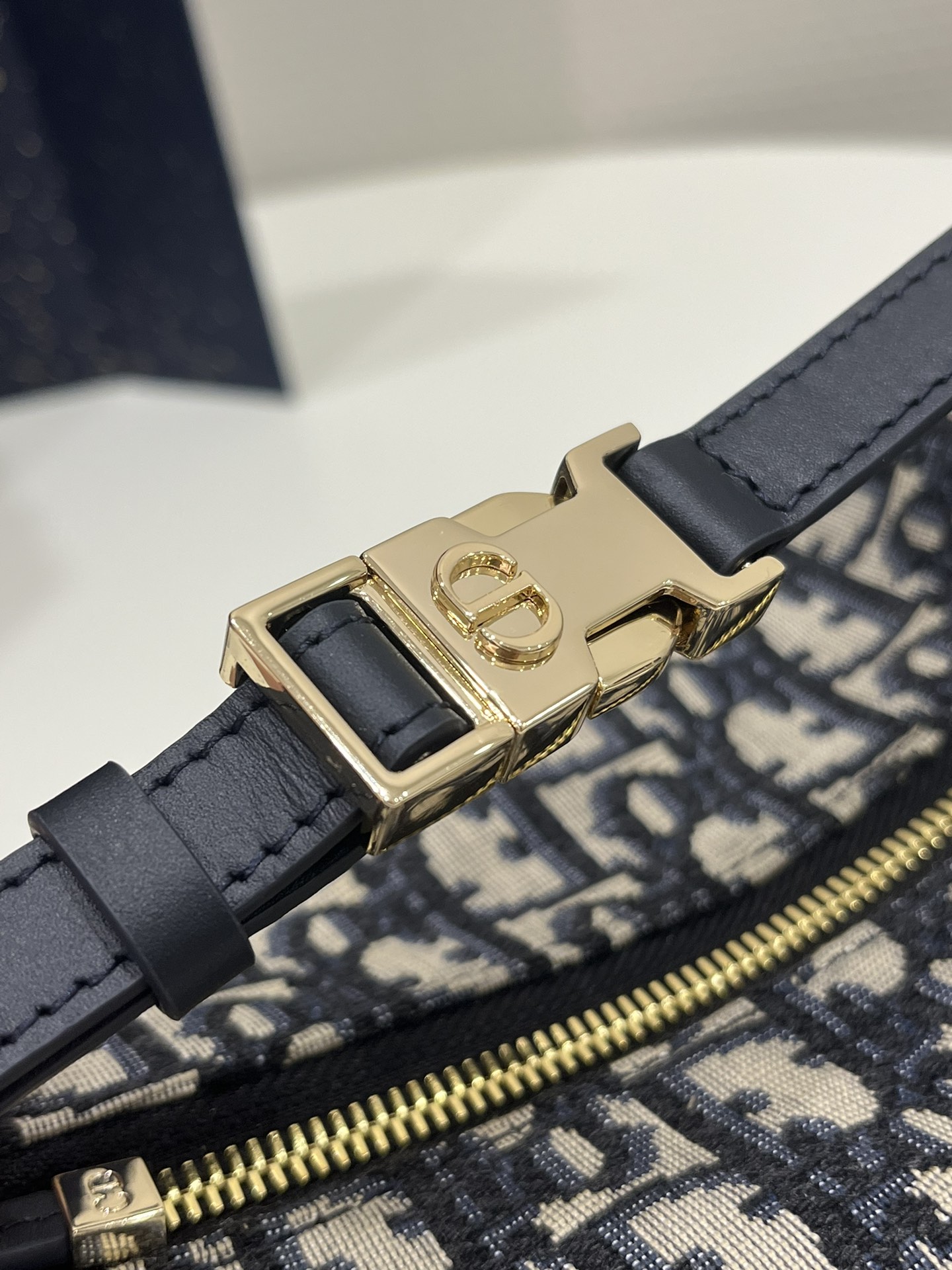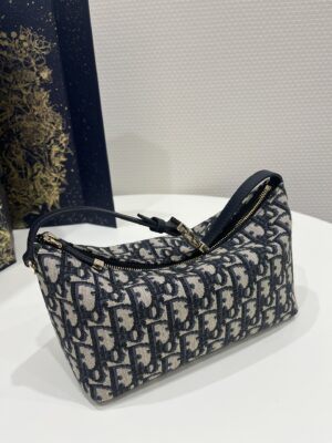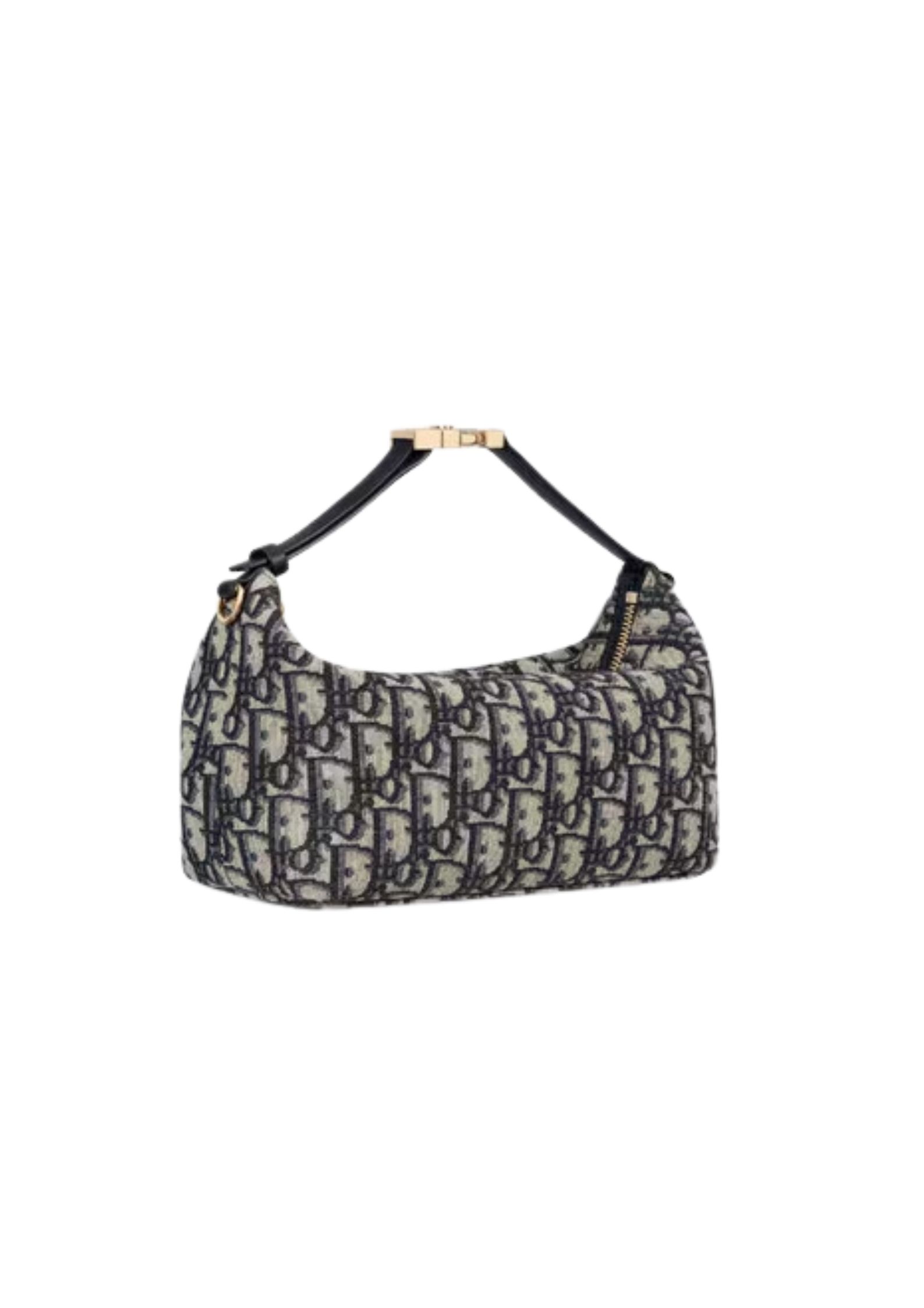 The Diortravel Nomad pouch is a modern hybrid design. Crafted in blue Dior Oblique jacquard, it presents a spacious and flexible form that will accommodate all the essentials. The medium style can be carried by hand or worn over the shoulder thanks to the top handle, complete with a military-inspired CD buckle, while one of the House’s embroidered shoulder straps can be attached to the side rings.