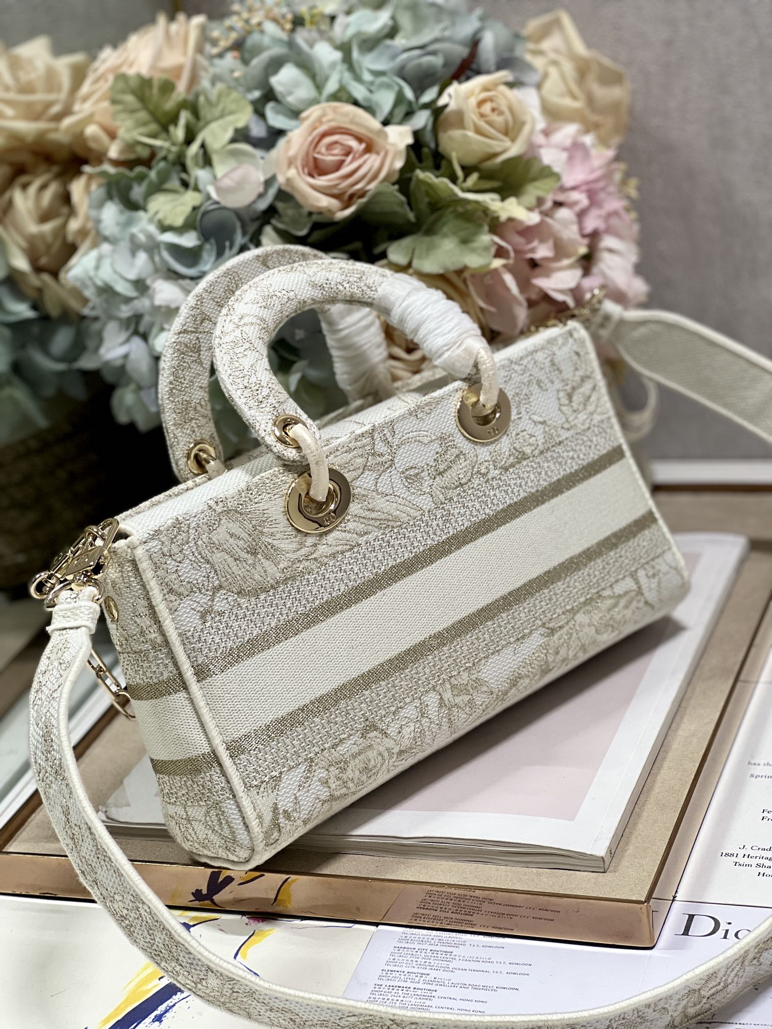 The Medium Lady D-Joy bag captures the House’s vision of elegance and beauty by showcasing the iconic streamlined aesthetic of the Lady Dior line. Demonstrating the House’s exceptional savoir-faire. Pale gold-finish metal D.I.O.R. charms further embellish its silhouette. Equipped with one removable chain shoulder strap and another adjustable and removable leather shoulder strap, the medium Lady D-Joy bag can be carried by hand, worn over the shoulder or crossbody as a daily companion.