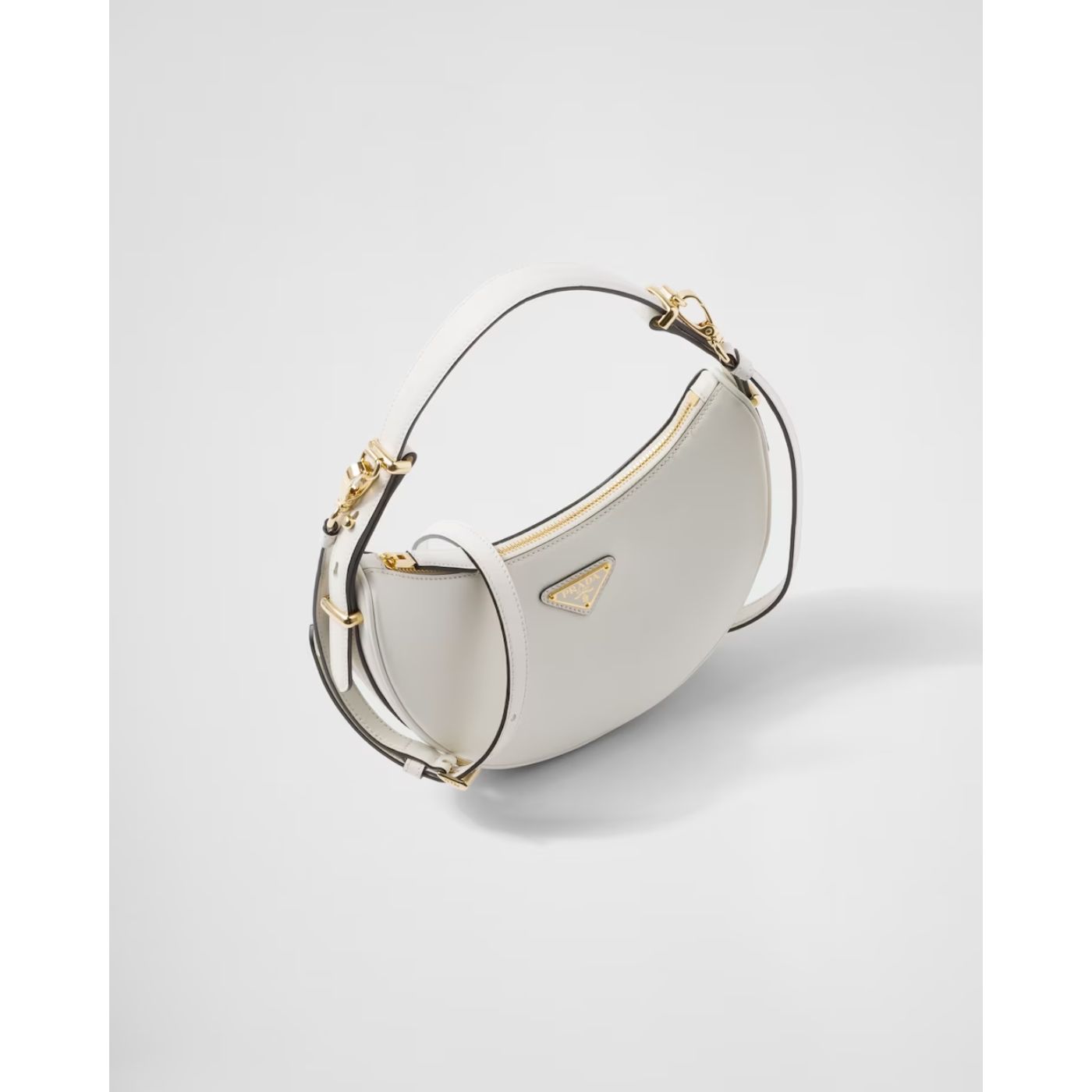 This sleek leather bag has a versatile, modernist allure. The accessory with a sinuous silhouette is completed by the leather extension and detachable shoulder strap for wearing different ways.