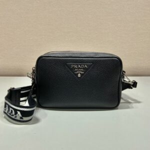 This shoulder bag with a double zipper is made of soft and illuminated by metal hardware for a modern accent. The accessory is completed by the detachable woven tape shoulder strap embroidered with the logo in a contrasting color, that makes it wearable as a crossbody or shoulder bag.