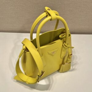 Sophisticated, subtle details bring new life to the brand’s iconic designs like the Prada Double bag with its new versatile and sophisticated mini design. Iconic metallic lettering adorns the front, while a removable shoulder strap allows the bag to be worn over the shoulder or as a crossbody bag.