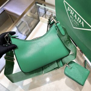 Inspired by the iconic mini hobo bag, the Prada Re-Edition 2005 shoulder bag is made of Re-Nylon: a regenerated nylon yarn produced from recycled, purified plastic trash collected in the ocean, fishing nets and textile waste fibers. Practical and feminine, the mini bag is decorated with iconic Saffiano trim. It features a contemporary mix of materials.