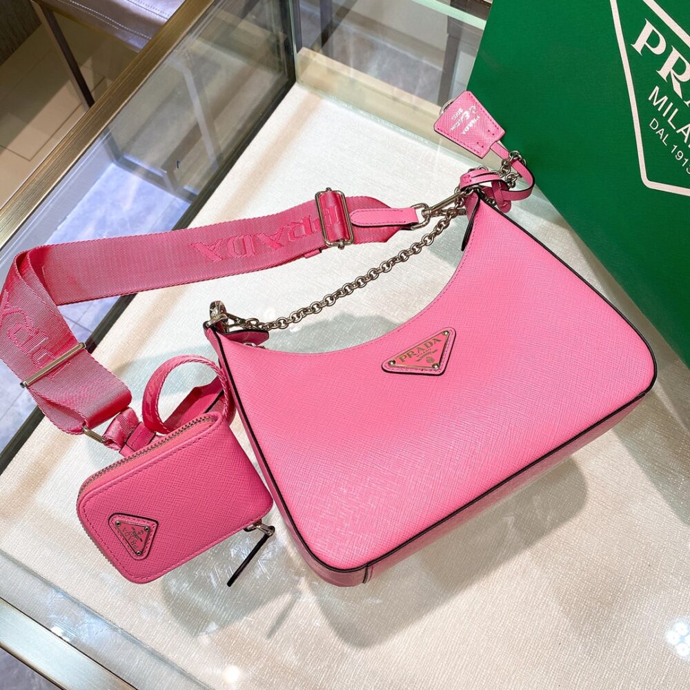 Inspired by the iconic mini hobo bag, the Prada Re-Edition 2005 shoulder bag is made of Re-Nylon: a regenerated nylon yarn produced from recycled, purified plastic trash collected in the ocean, fishing nets and textile waste fibers. Practical and feminine, the mini bag is decorated with iconic Saffiano trim. It features a contemporary mix of materials.