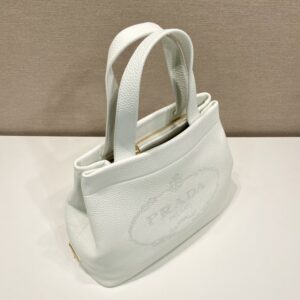 Hemp bag with silkscreen Prada logo and vintage enamel triangle logo on the sides. Inside, three pockets and a lightweight hemp lining.