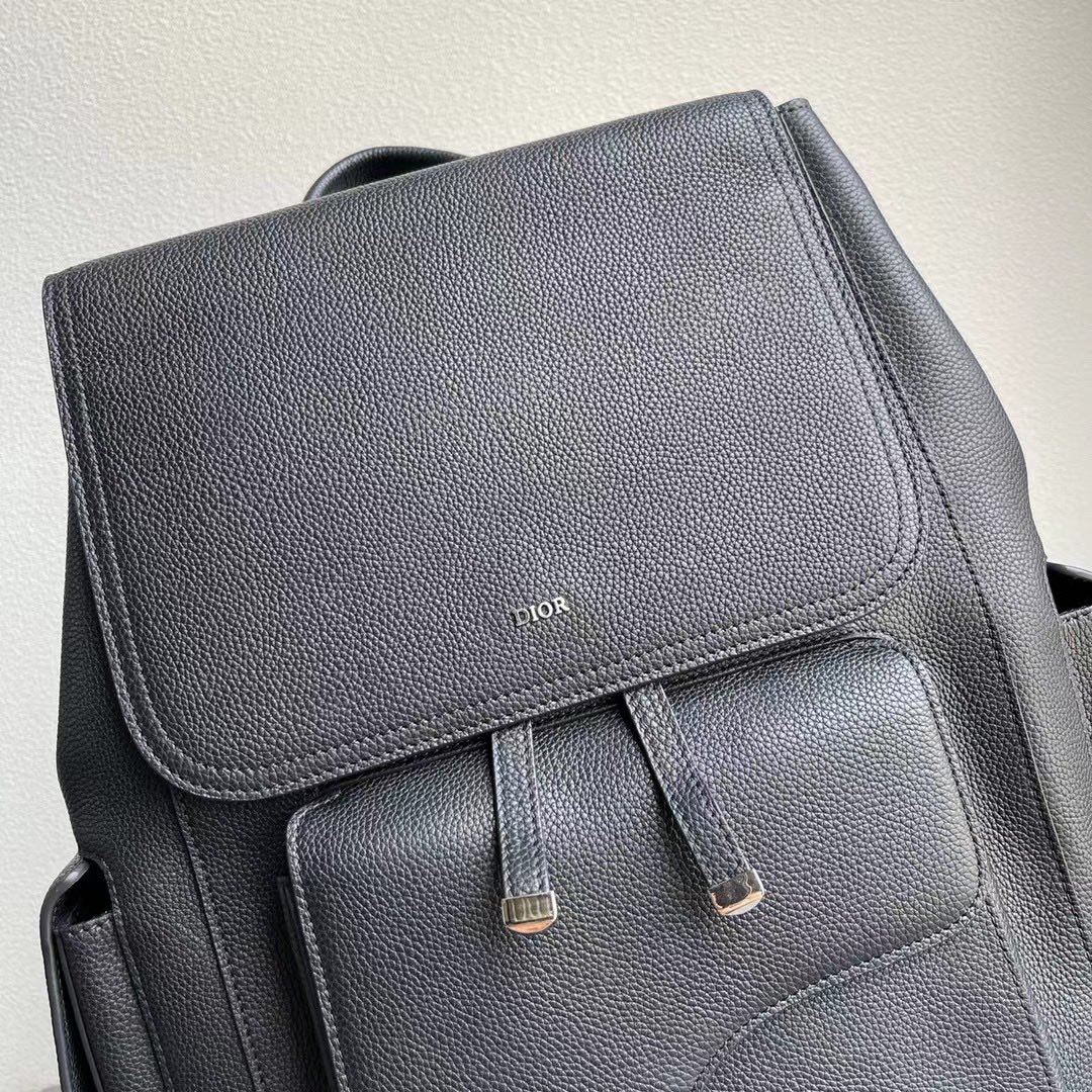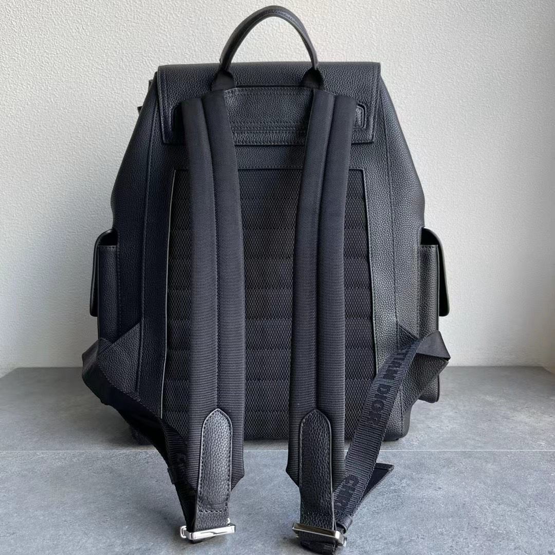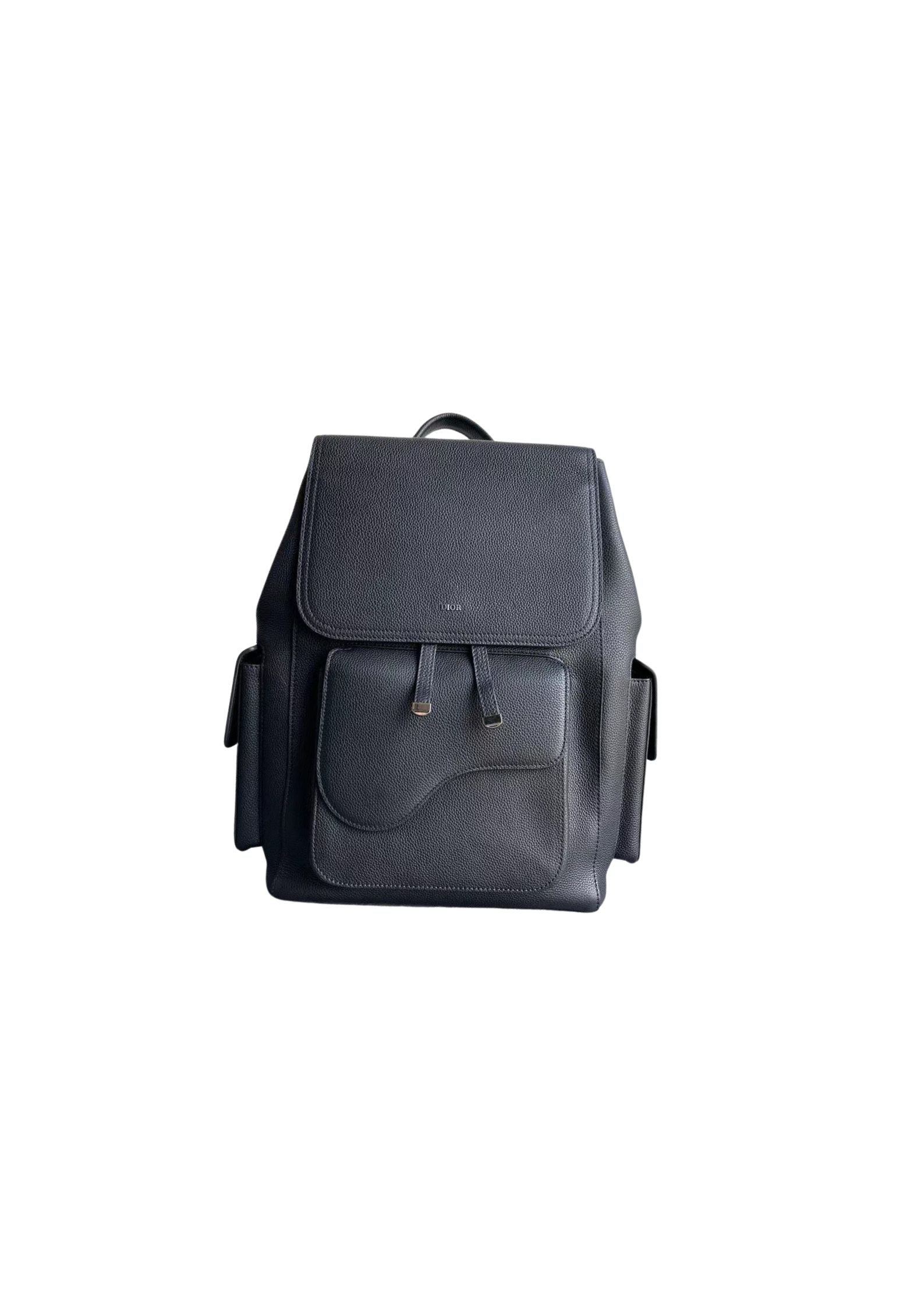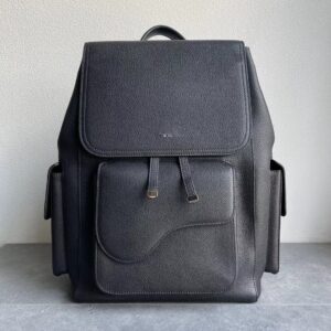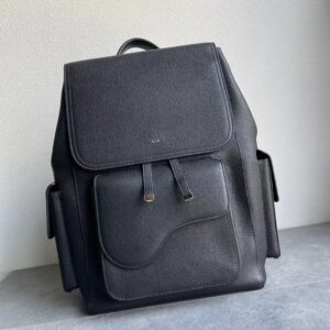 • The Saddle backpack offers a modern and original take on the Saddle design. The black grained with contrasting topstitching is embellished with a Dior signature on the front. The spacious design has a compartment to hold all the essentials, while the flap Saddle pocket on the front and two side flap pockets offer easy access to a wallet, keys, headphones or phone. The practical backpack will lend the finishing touch to any outfit.