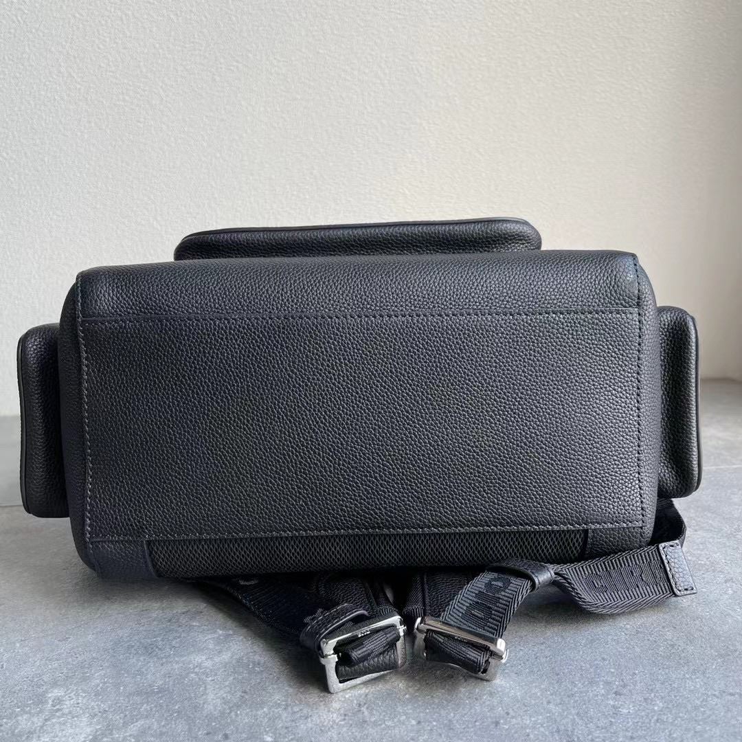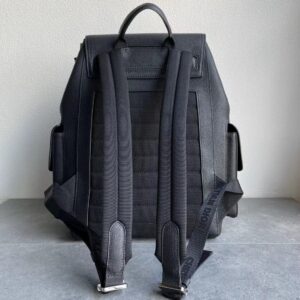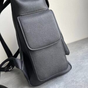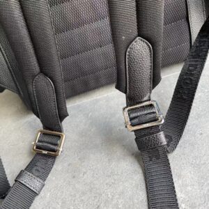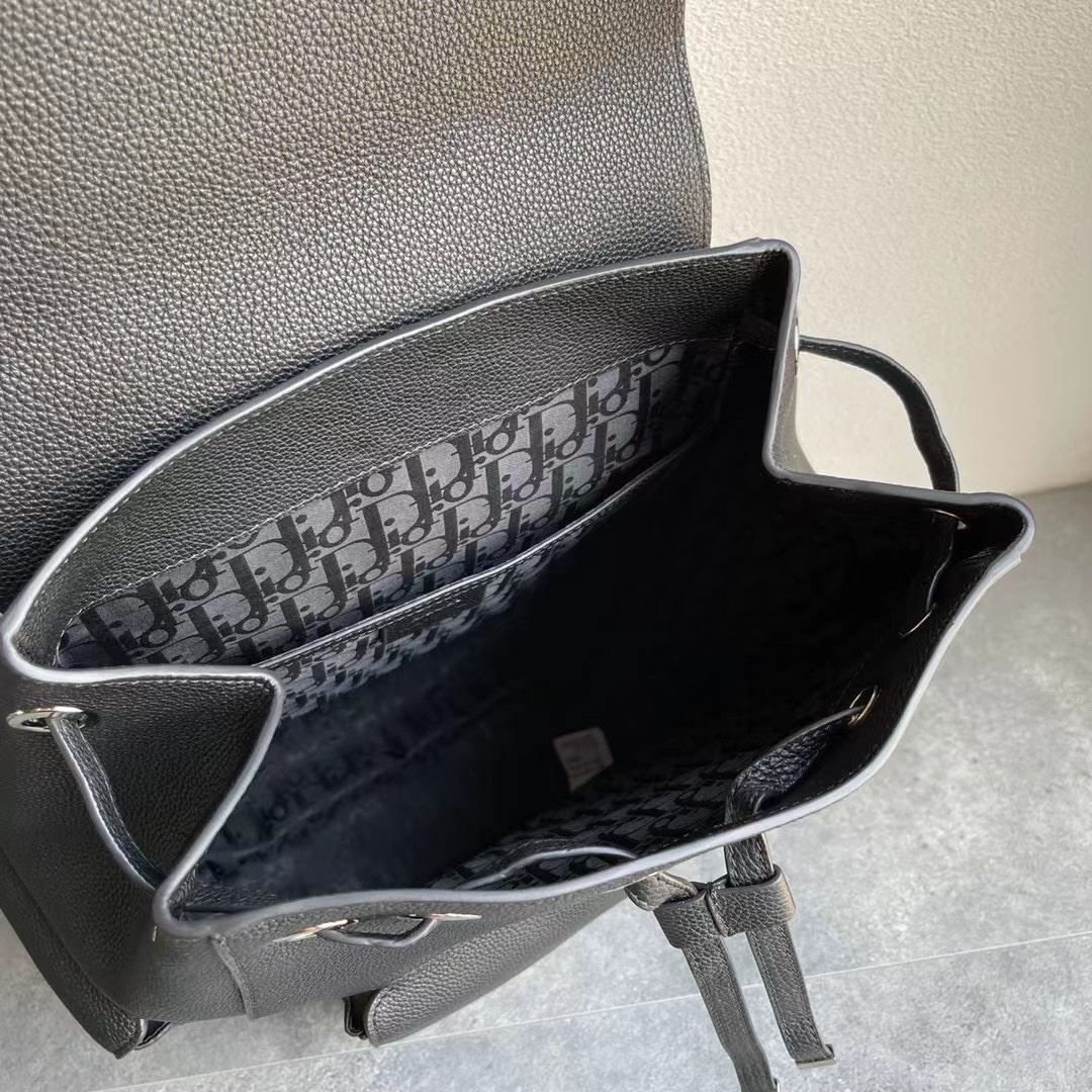 • The Saddle backpack offers a modern and original take on the Saddle design. The black grained with contrasting topstitching is embellished with a Dior signature on the front. The spacious design has a compartment to hold all the essentials, while the flap Saddle pocket on the front and two side flap pockets offer easy access to a wallet, keys, headphones or phone. The practical backpack will lend the finishing touch to any outfit.