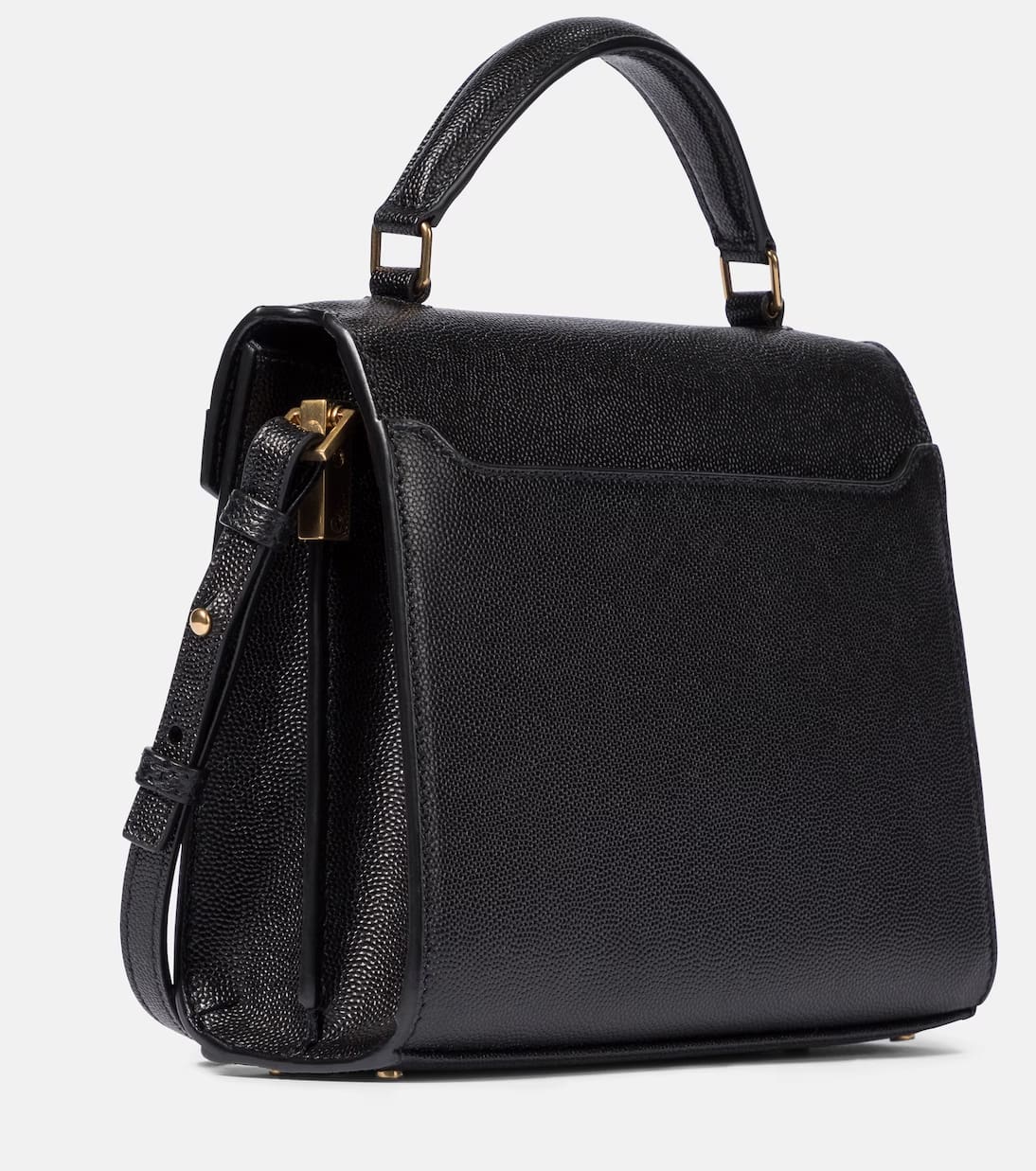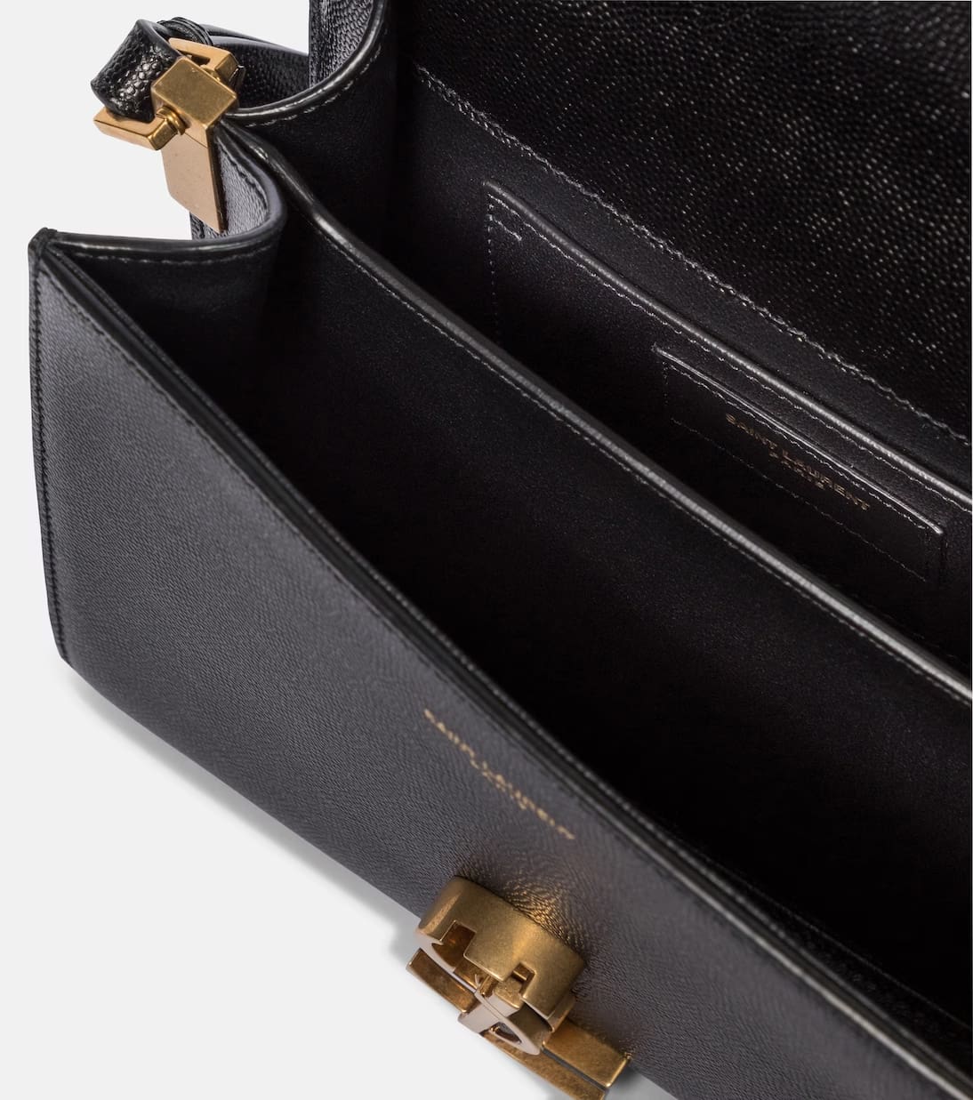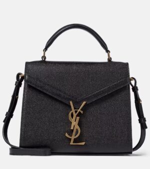 Strongly structured and cinched with golden turn-lock monogram hardware, the Cassandra Mini shoulder bag captures Saint Laurent’s polished aesthetic. Made from grained black calf leather, it boasts dual compartments and a card slot for effortless organization. Swing yours from the top handle for boardroom-ready styling.