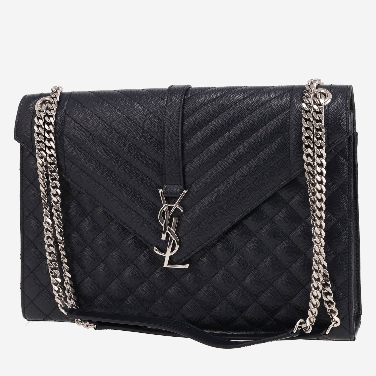 Each bag sold on Collector Square is expertly appraised and chosen for its excellent condition. Dispatched within 24 hours. CURRENT SALES The fashion week edit Chain jewellery Quiet tones Rolex o'clock Winter interior See all sales BAGS All bags Hermès Chanel Louis Vuitton Dior Saint Laurent Celine Gucci Fendi Bottega Veneta Loewe See all brands WATCHES All watches Rolex Cartier Patek Philippe Chanel Audemars Piguet Jaeger-LeCoultre Omega Hermès Piaget Breitling See all brands JEWELLERY All jewellery Cartier Van Cleef & Arpels Bulgari Pomellato Fred Boucheron Tiffany & Co Chanel Hermès Dior Chaumet See all brands ART & COLLECTABLES All Collectibles Fine Art Objects Works on paper Collectables SELL AN ITEM EXPERTS & SERVICES Our Experts Watch Service Center Leather Goods Service Center Jewellery Service Center LIVE SHOPPING LOG IN Customer service Showroom CURRENT SALES BAGS BRANDS Hermès Chanel Louis Vuitton Dior Saint Laurent Celine Gucci Fendi Bottega Veneta Loewe ALL BRANDS ICONIC MODELS Hermès Birkin Hermès Kelly Hermès Constance Chanel Timeless Chanel 2.55 Louis Vuitton Keepall Louis Vuitton Editions Limitées Dior Lady Dior Dior Saddle Goyard Saint-Louis Fendi Baguette QUICK SEARCH Bags for men Bags for women Handbags Shoulder bags Travel bags Trunks Shopping bags Backpacks Clutches Leather Goods Service Center FIND OUT Watch Service Center FIND OUT Jewellery Service Center FIND OUT Home / Bags / Saint Laurent / Envelope / Saint Laurent Envelope handbag in navy blue quilted grained leather SAINT LAURENT 1,980 € Retail price recorded on the basis of similar items in 2026 Retail Price: 2,850 € Condition : Very good condition Collection : Envelope Model : Envelope Gender : Ladies Period : 2020's Color : Blue Material : Leather Length : 31,5 cm Height : 22 cm Width : 6 cm Category : Handbag Shoulder strap : 34 – 54 cm Comment from our specialist: Wonderful Saint Laurent Envelope handbag in navy blue quilted grained leather, hardware in silver metal, double convertible chain strap in silver metal allowing the bag to be worn in the hand or on the shoulder or accross the body. Very good condition : nice model, few signs of wear inside of the bag. View the ratings for Envelope bags Available at the Paris showroom Make an appointment All items come with a certificate of authenticity. Each item is appraised before being listed and reviewed by our committee of recognized experts and specialists. Learn more about our experts All items are stocked by Collector Square and shipped within 24 hours. Secure delivery is handled by professional carriers (UPS or DHL) between 9 a.m. – Rest of the world: €90, within 6 to 8 business days. These rates may vary for items over €10,000. 14-days return policy You have 14 days from the date of recei