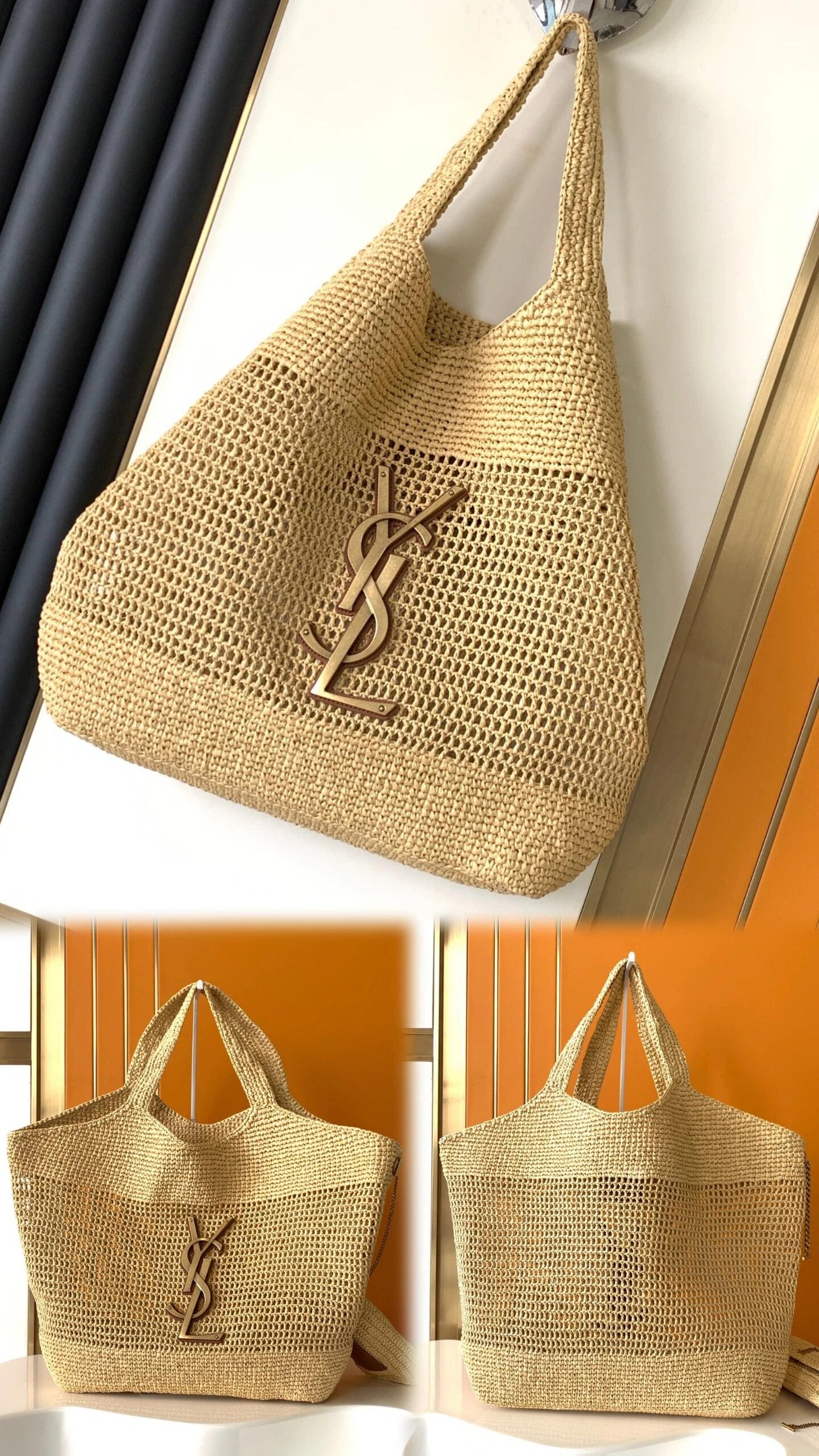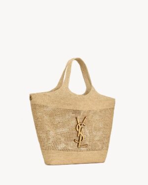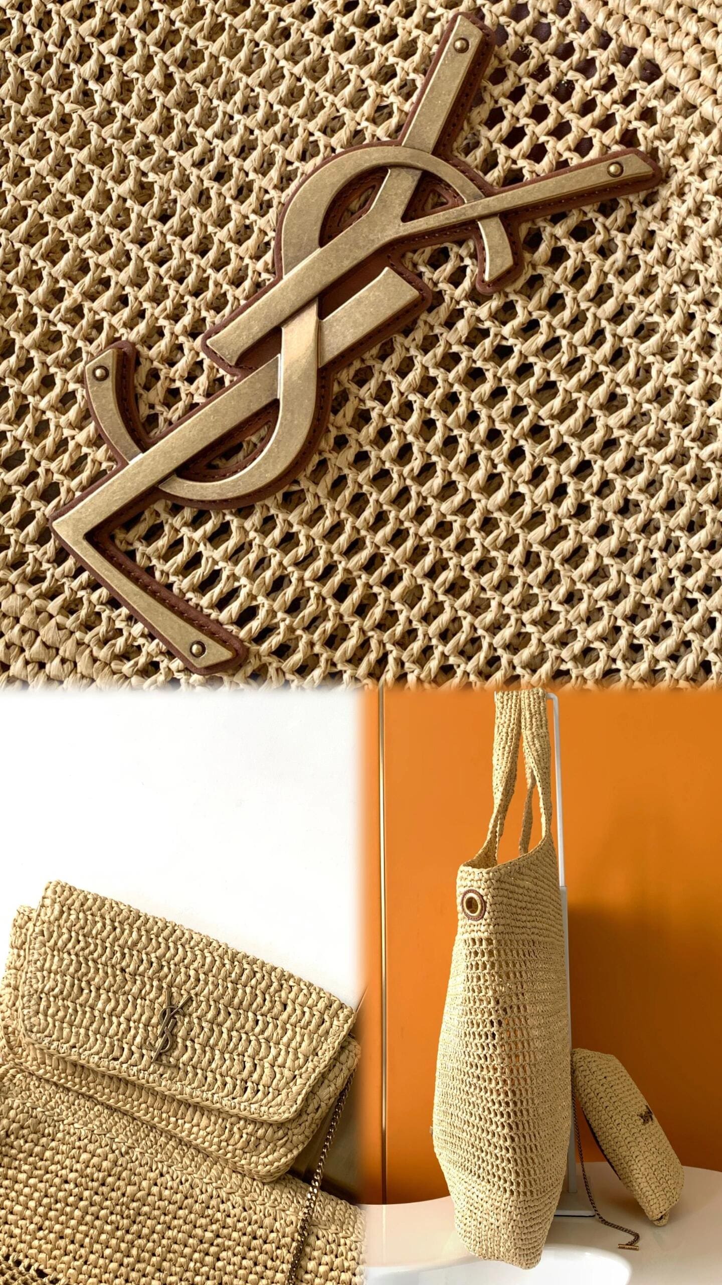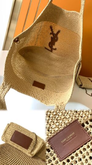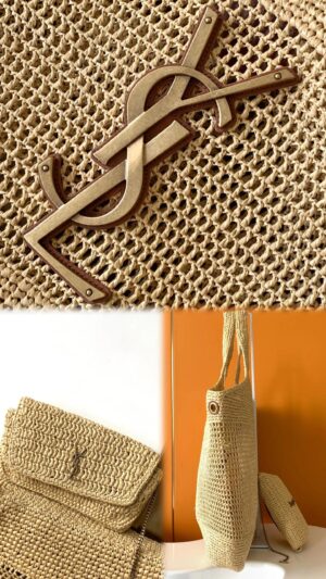 IT FEATURES a raffia sunglasses case WHICH CAN BE REMOVED THANKS TO ITS LONG CHAIN.