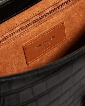 • Saint Laurent “Le 5 A 7” hobo bag in shiny crocodile-embossed calf leather
