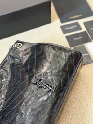 SHOPPING BAG IN VINTAGE CALF LEATHER, FEATURING CHEVRON QUILT OVERSTITCHING AND LEATHER-ENCASED CASSANDRE.