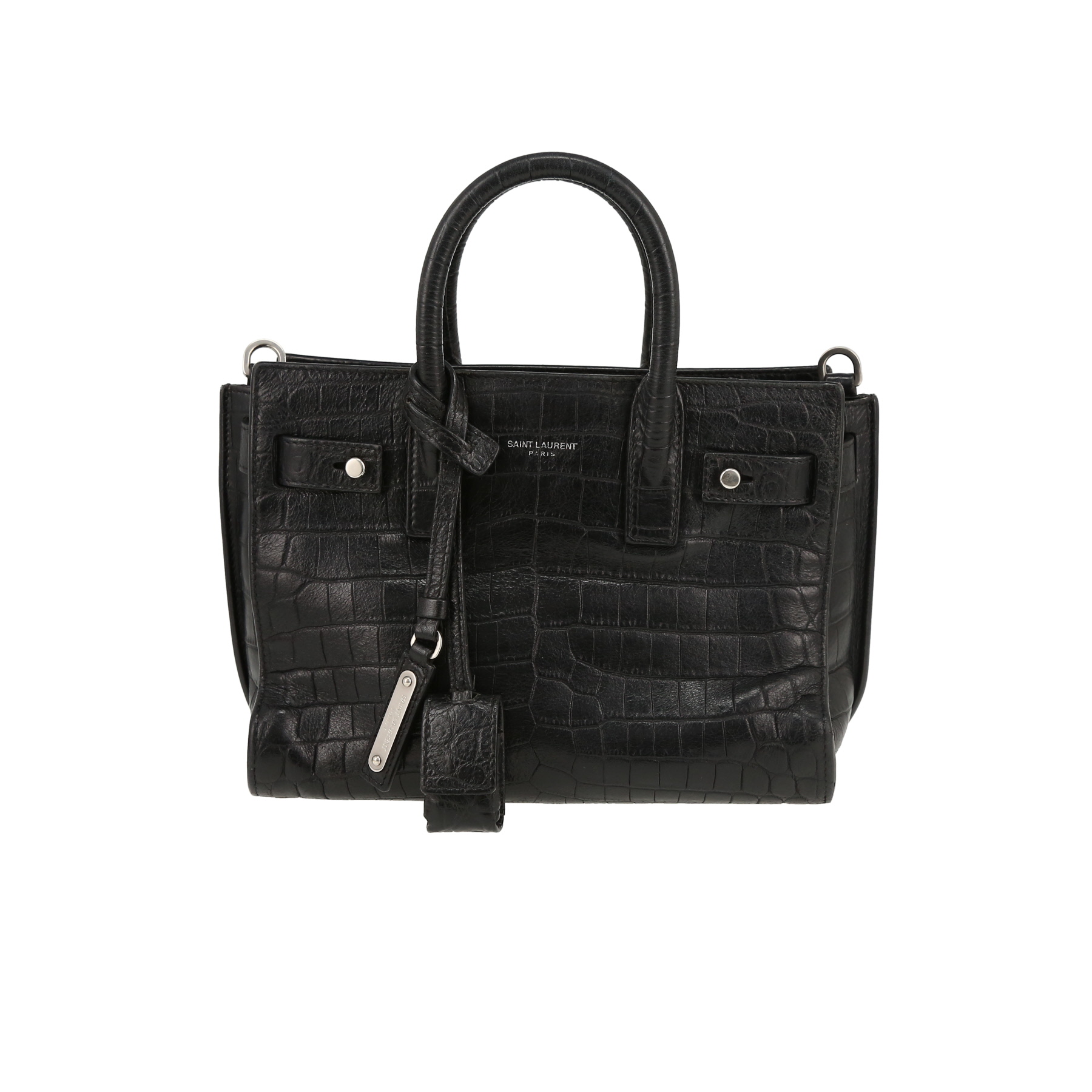 Each bag sold on Collector Square is expertly appraised and chosen for its excellent condition. Dispatched within 24 hours. CURRENT SALES Vendôme treasures The fashion week edit Chain jewellery Quiet tones Rolex o'clock Winter interior See all sales BAGS All bags Hermès Chanel Louis Vuitton Dior Saint Laurent Celine Gucci Fendi Bottega Veneta Loewe See all brands WATCHES All watches Rolex Cartier Patek Philippe Chanel Audemars Piguet Jaeger-LeCoultre Omega Hermès Piaget Breitling See all brands JEWELLERY All jewellery Cartier Van Cleef & Arpels Bulgari Pomellato Fred Boucheron Tiffany & Co Chanel Hermès Dior Chaumet See all brands ART & COLLECTABLES All Collectibles Fine Art Objects Works on paper Collectables SELL AN ITEM EXPERTS & SERVICES Our Experts Watch Service Center Leather Goods Service Center Jewellery Service Center LIVE SHOPPING LOG IN Customer service Showroom CURRENT SALES BAGS BRANDS Hermès Chanel Louis Vuitton Dior Saint Laurent Celine Gucci Fendi Bottega Veneta Loewe ALL BRANDS ICONIC MODELS Hermès Birkin Hermès Kelly Hermès Constance Chanel Timeless Chanel 2.55 Louis Vuitton Keepall Louis Vuitton Editions Limitées Dior Lady Dior Dior Saddle Goyard Saint-Louis Fendi Baguette QUICK SEARCH Bags for men Bags for women Handbags Shoulder bags Travel bags Trunks Shopping bags Backpacks Clutches Leather Goods Service Center FIND OUT Watch Service Center FIND OUT Jewellery Service Center FIND OUT Home / Bags / Saint Laurent / Sac de jour / Saint Laurent Sac de jour Nano handbag in black leather SAINT LAURENT 1,150 € Retail price recorded on the basis of similar items in 2026 Retail Price: 2,300 € Condition : Used Collection : Sac de jour Model : Sac de jour Nano Gender : Ladies Period : 2010's Color : Black Material : Leather Length : 22 cm Height : 17,5 cm Width : 11 cm Category : Shoulder bag Shoulder strap : 50 cm Comment from our specialist: Nice Saint Laurent Sac de jour Nano handbag in black leather, hardware in silver metal, double handle in black leather crocodile imitation, one adjustable and removable shoulder strap in black leather crocodile imitation allowing the bag to be worn in the hand or on the shoulder or accross the body. Used condition : nice combination, signs of wear inside the bag, patina on the corners and of the bag, signs of wear inside and outside of the bag. View the ratings for Sac de jour Nano bags Available at the Paris showroom Make an appointment All items come with a certificate of authenticity. Each item is appraised before being listed and reviewed by our committee of recognized experts and specialists. Learn more about our experts All items are stocked by Collector Square and shipped within 24 hours. Secure delivery is handled by professional carriers (UPS or DHL) between 9 a.m.