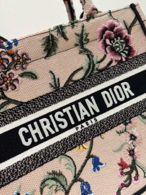Introduced by Maria Grazia Chiuri, Creative Director of Christian Dior, the Large Dior Book Tote Bag has become a staple of the Dior aesthetic. Designed to hold all daily essentials, the style is fully embroidered with a multicolor Dior Petites Fleurs motif, a romantic and vibrant homage to Mr. Dior’s passion for florals. Adorned with the Christian Dior Paris signature on the front, the small tote exemplifies the House’s signature savoir-faire and may be carried by hand.